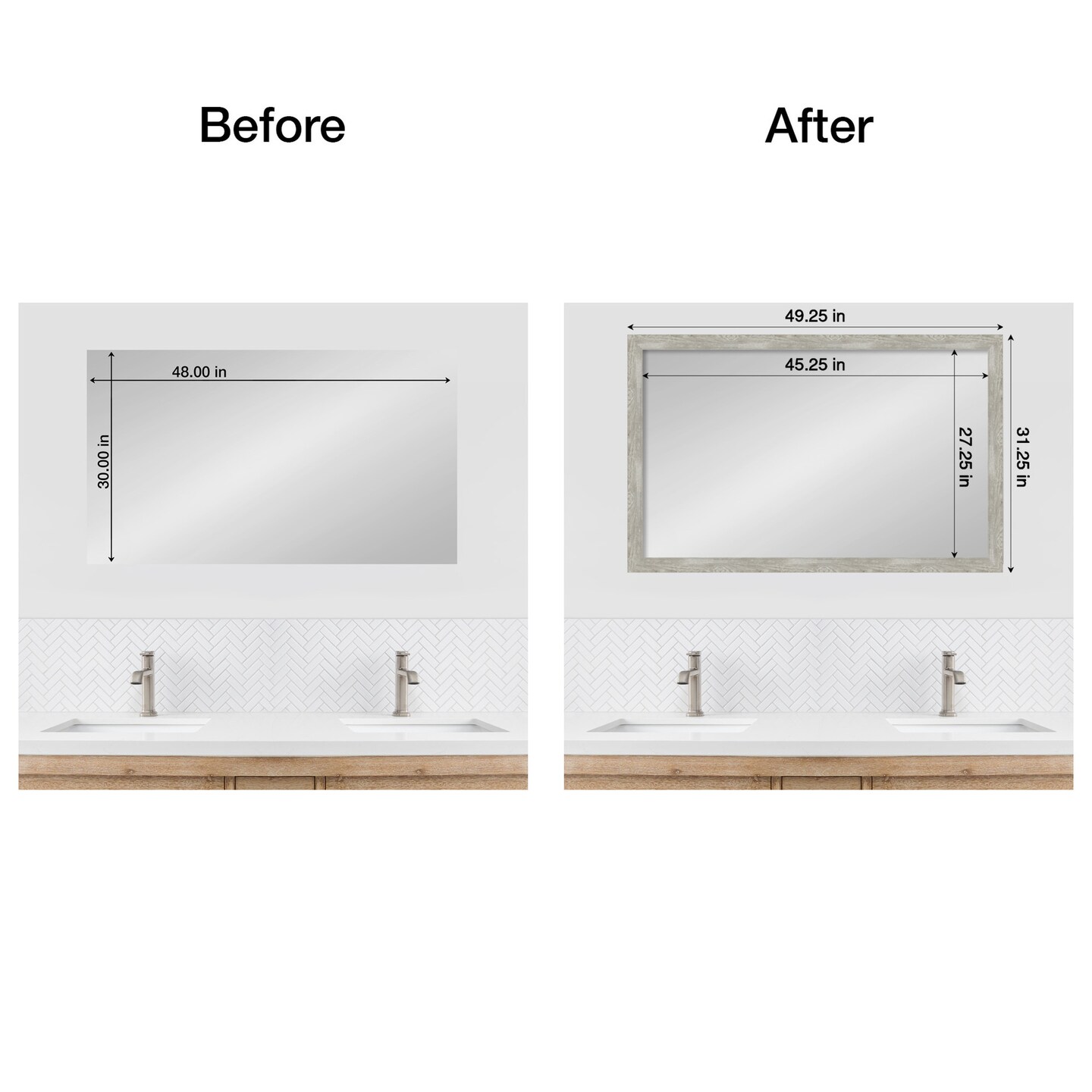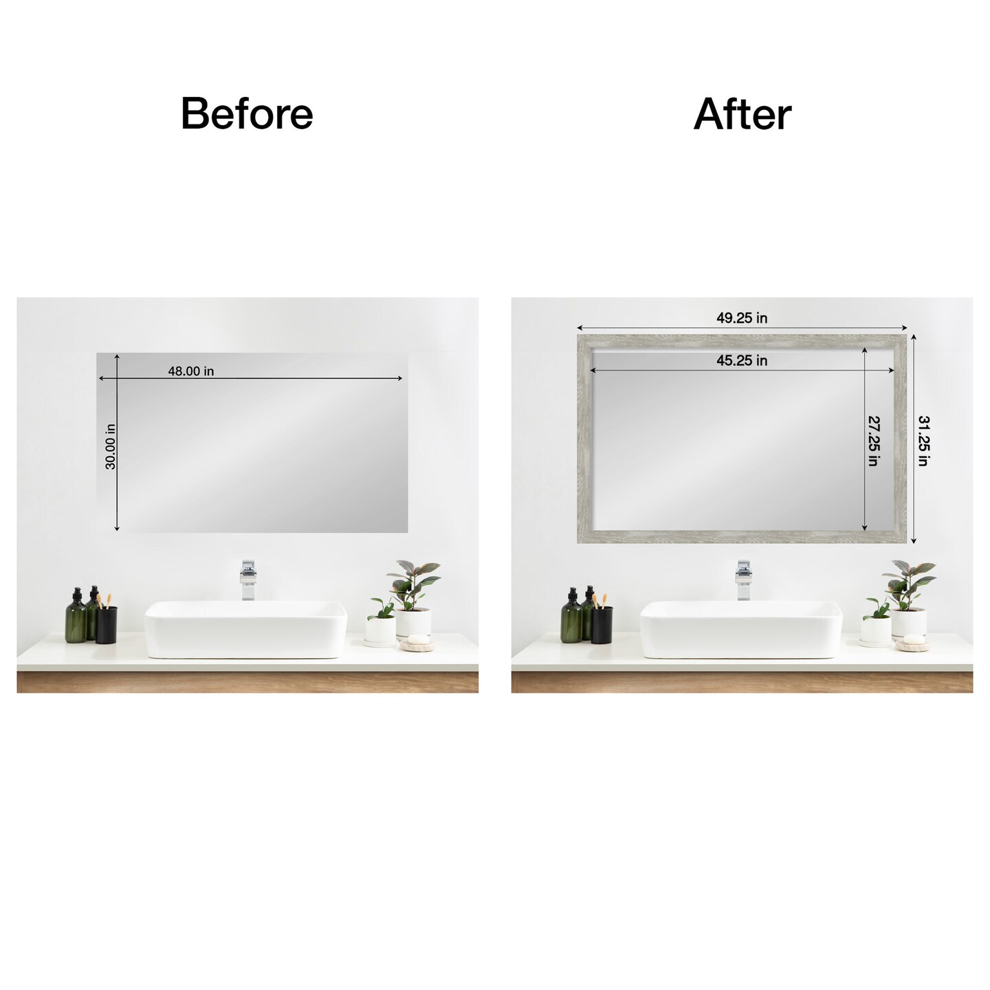 Amanti Art Mirror Makeover Bathroom Mirror Frame Border Kit - Fully Assembled Peel and Stick Frame - Mirror NOT Included - Dove Greywash Narrow Trim