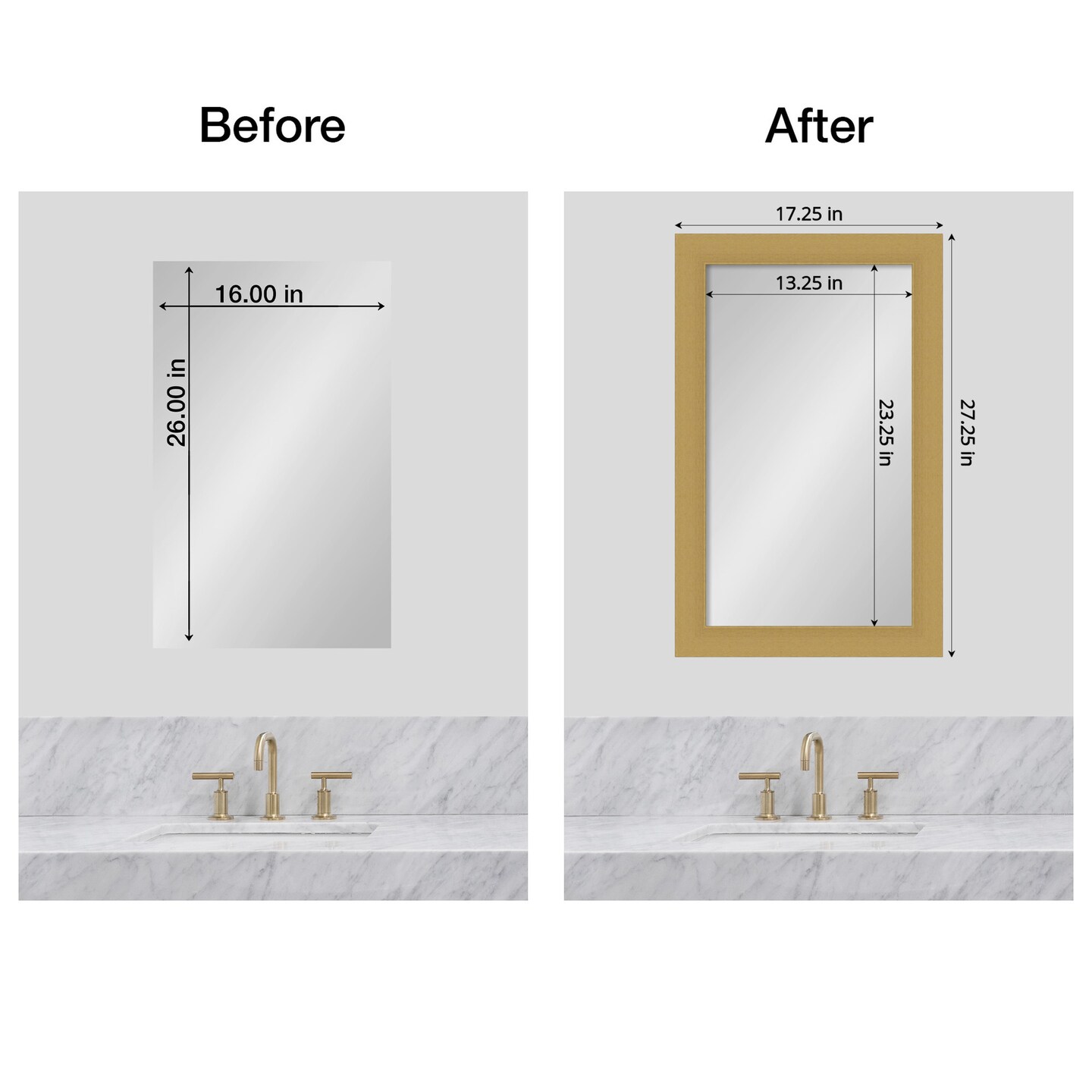 Amanti Art Mirror Makeover Bathroom Mirror Frame Border Kit - Fully Assembled Peel and Stick Frame - Mirror NOT Included - Grace Brushed Gold Trim