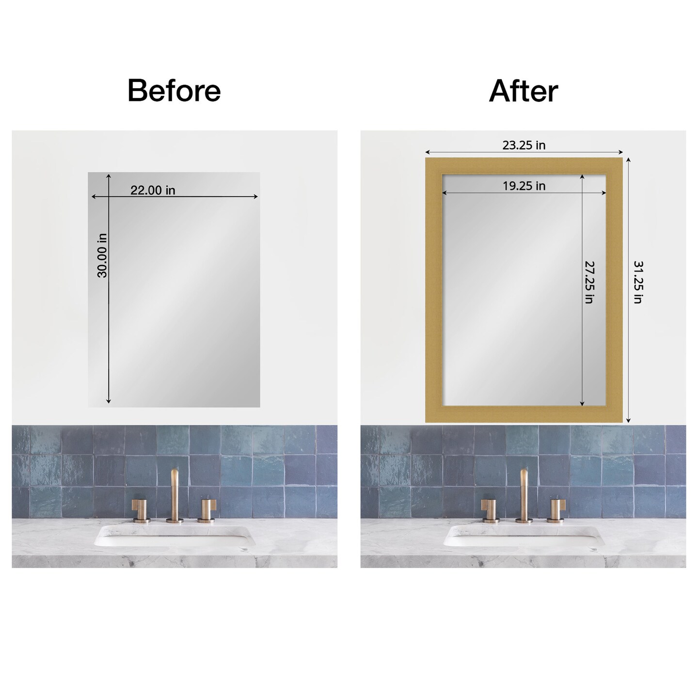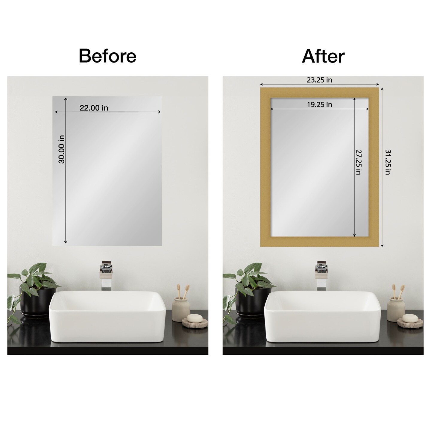 Amanti Art Mirror Makeover Bathroom Mirror Frame Border Kit - Fully Assembled Peel and Stick Frame - Mirror NOT Included - Grace Brushed Gold Trim