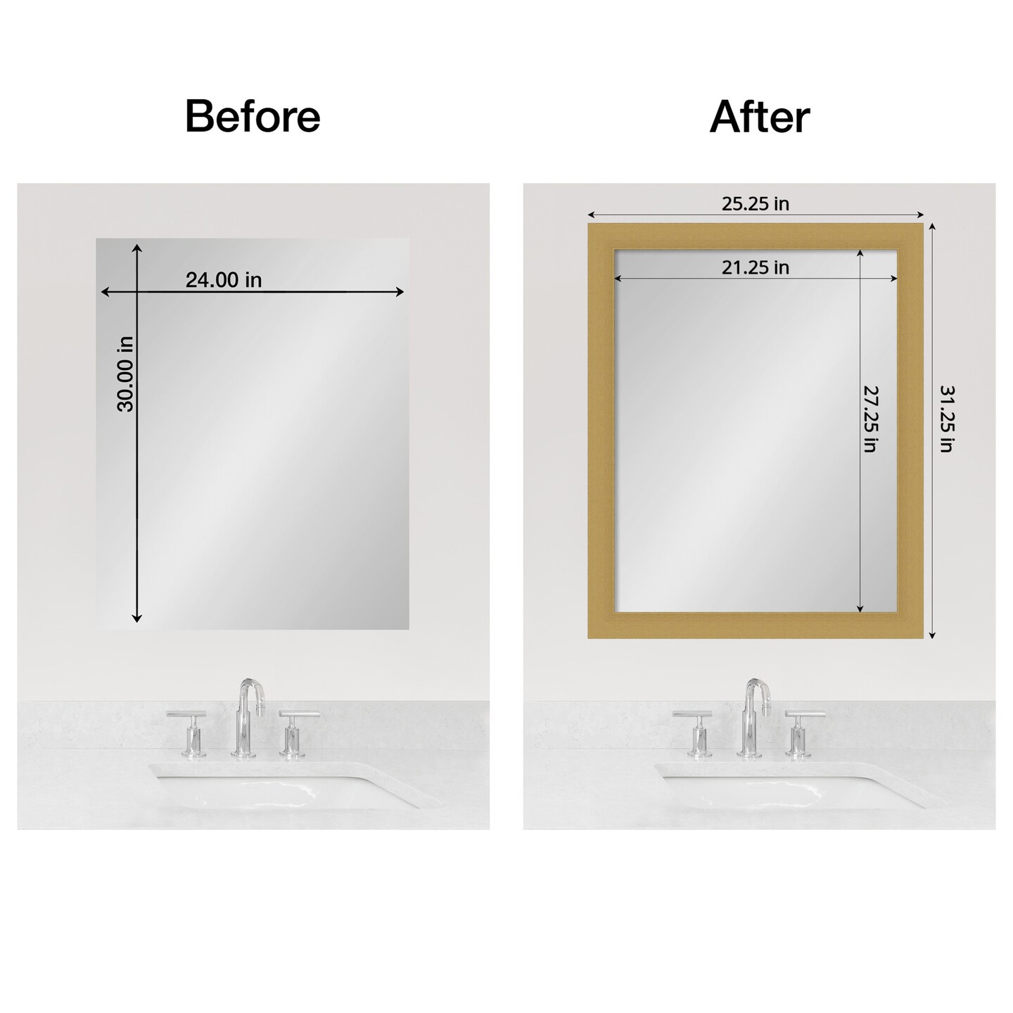 Amanti Art Mirror Makeover Bathroom Mirror Frame Border Kit - Fully Assembled Peel and Stick Frame - Mirror NOT Included - Grace Brushed Gold Trim