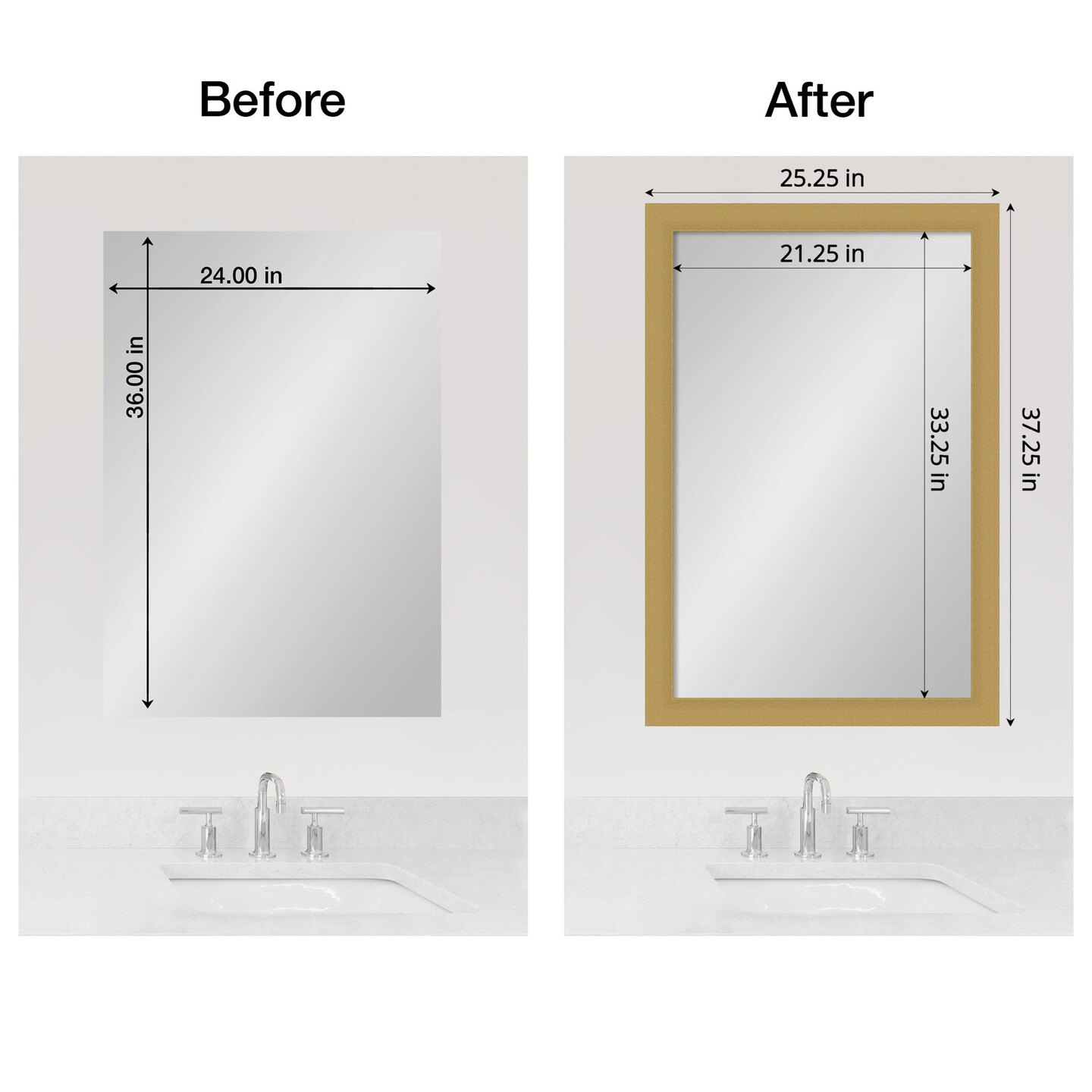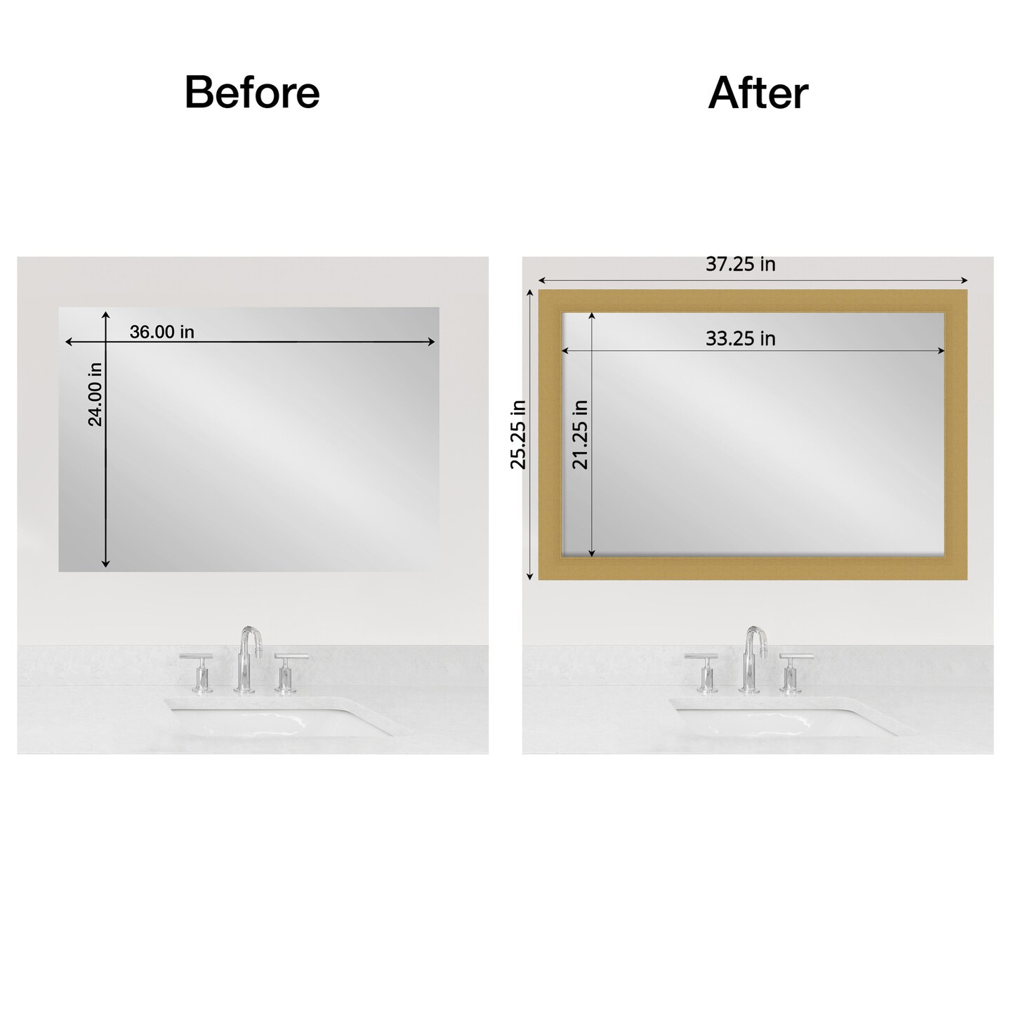 Amanti Art Mirror Makeover Bathroom Mirror Frame Border Kit - Fully Assembled Peel and Stick Frame - Mirror NOT Included - Grace Brushed Gold Trim