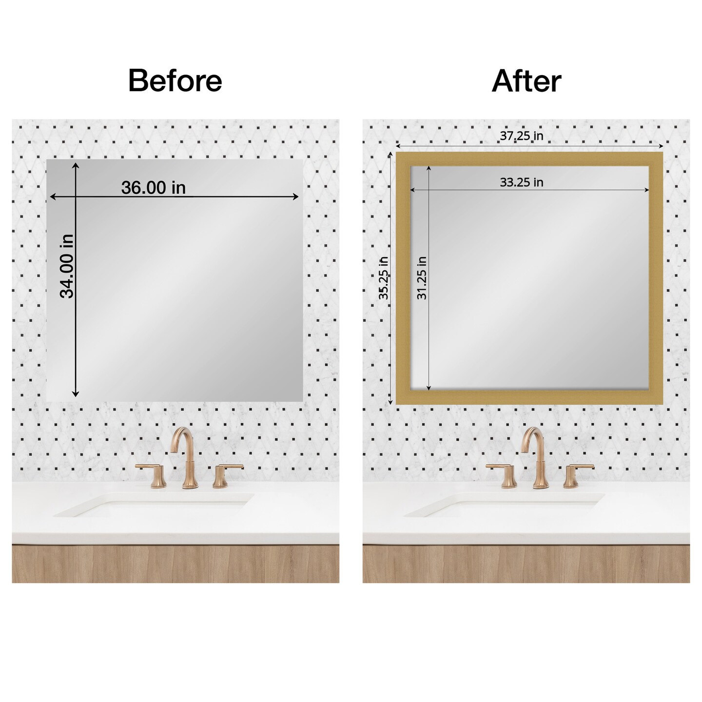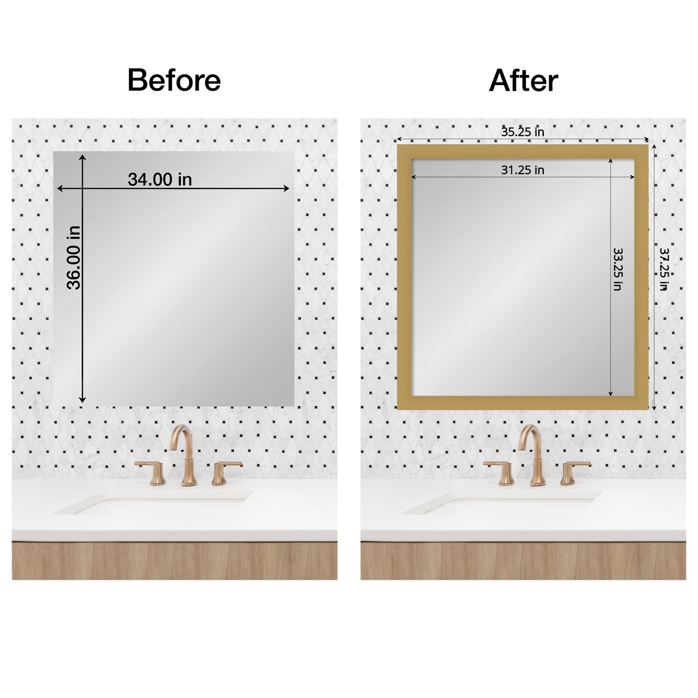 Amanti Art Mirror Makeover Bathroom Mirror Frame Border Kit - Fully Assembled Peel and Stick Frame - Mirror NOT Included - Grace Brushed Gold Trim