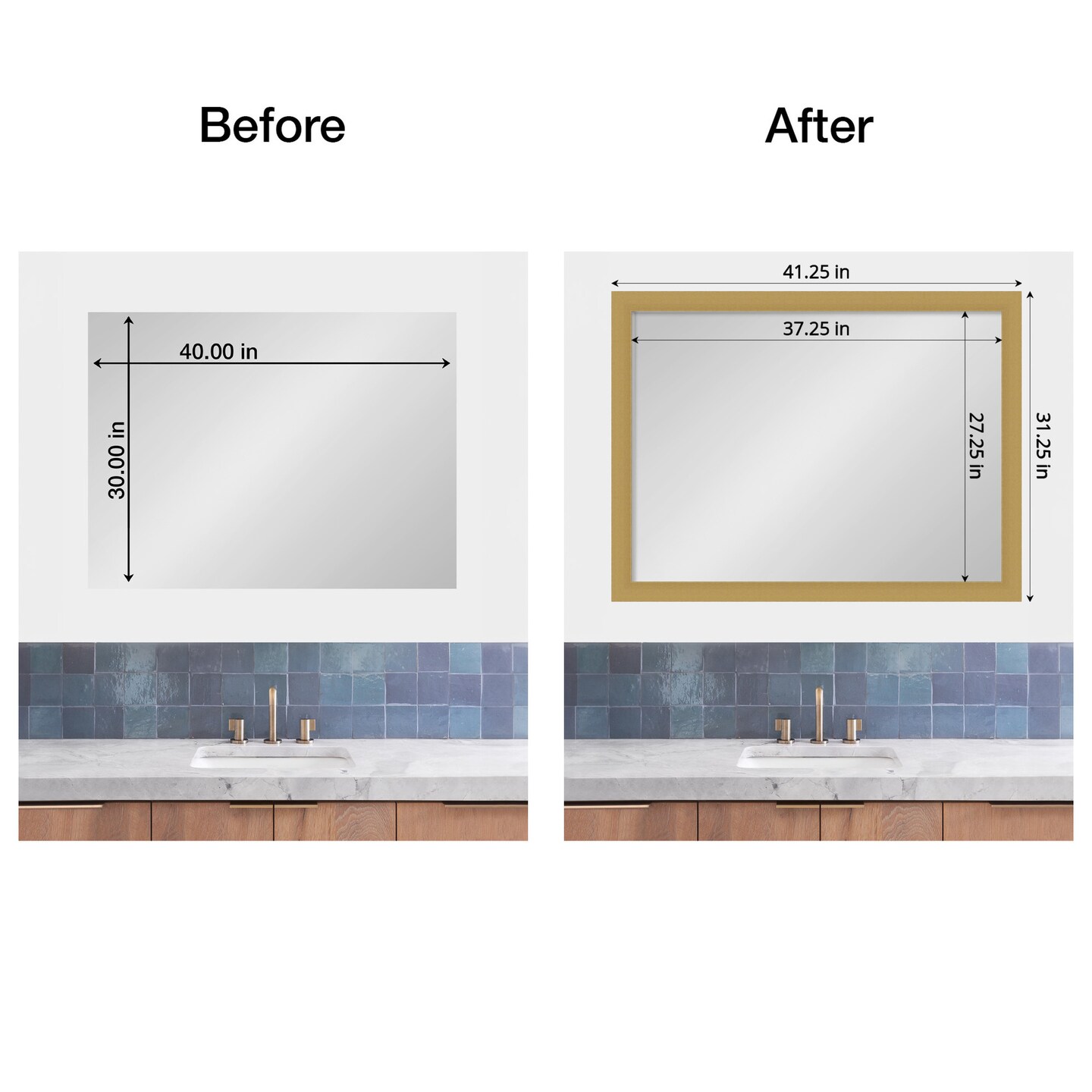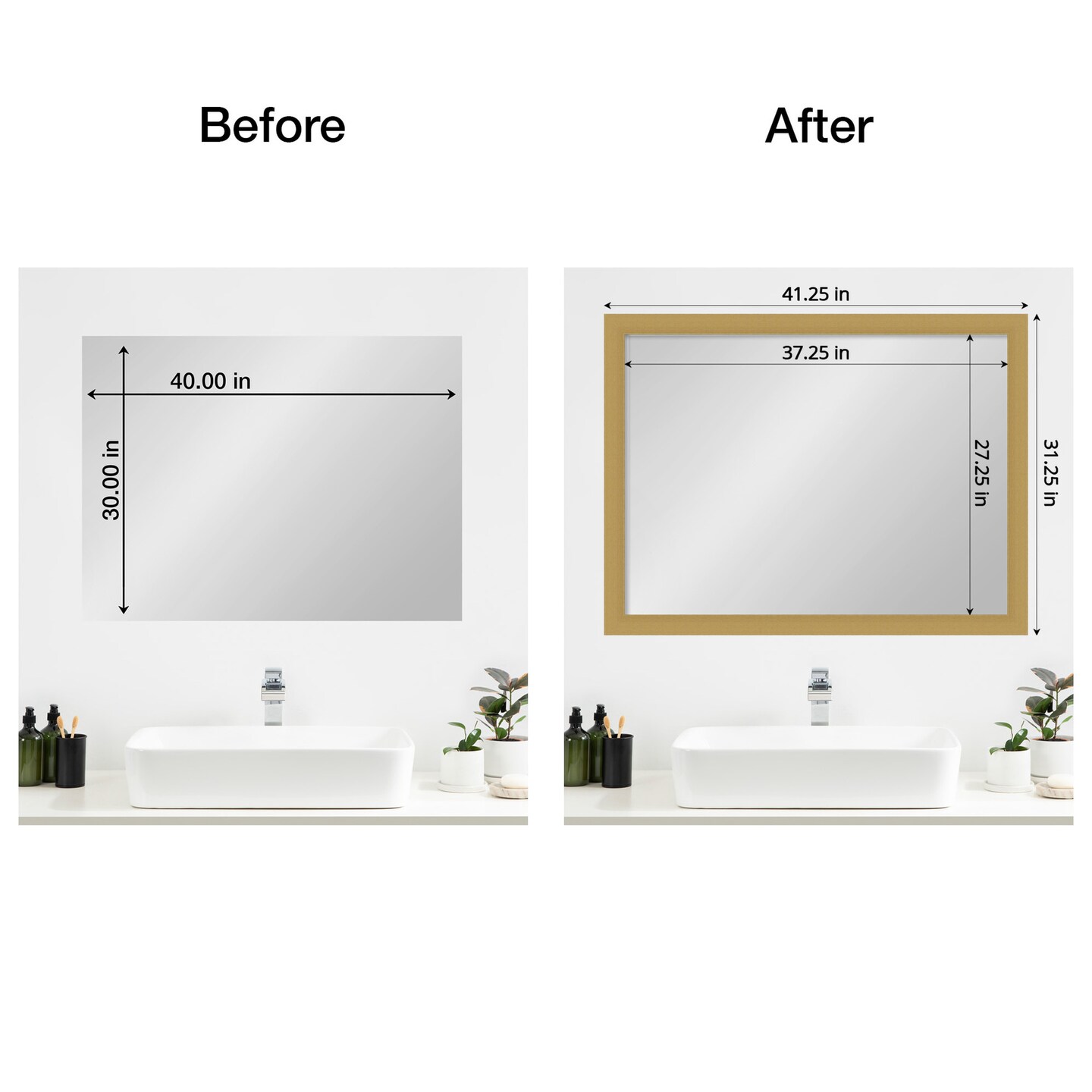 Amanti Art Mirror Makeover Bathroom Mirror Frame Border Kit - Fully Assembled Peel and Stick Frame - Mirror NOT Included - Grace Brushed Gold Trim