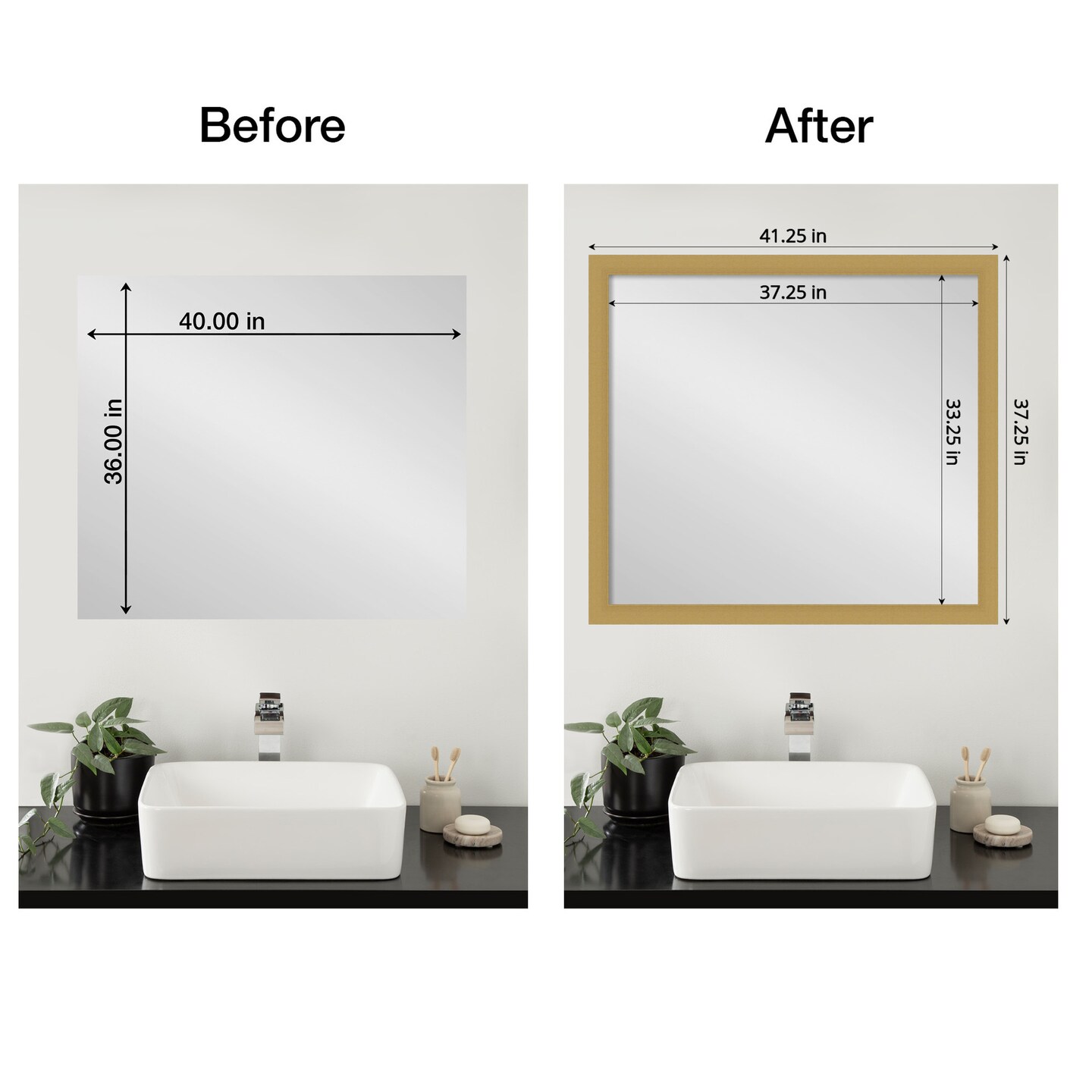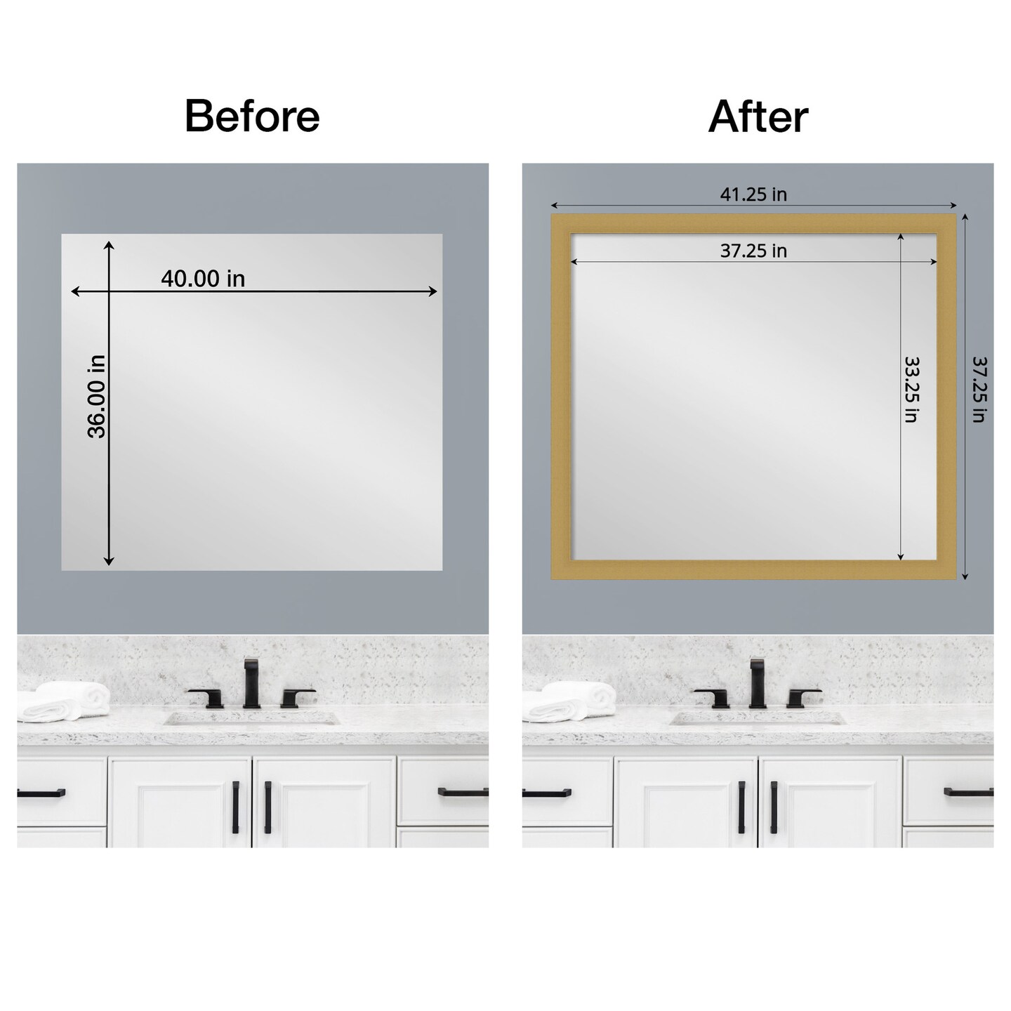 Amanti Art Mirror Makeover Bathroom Mirror Frame Border Kit - Fully Assembled Peel and Stick Frame - Mirror NOT Included - Grace Brushed Gold Trim