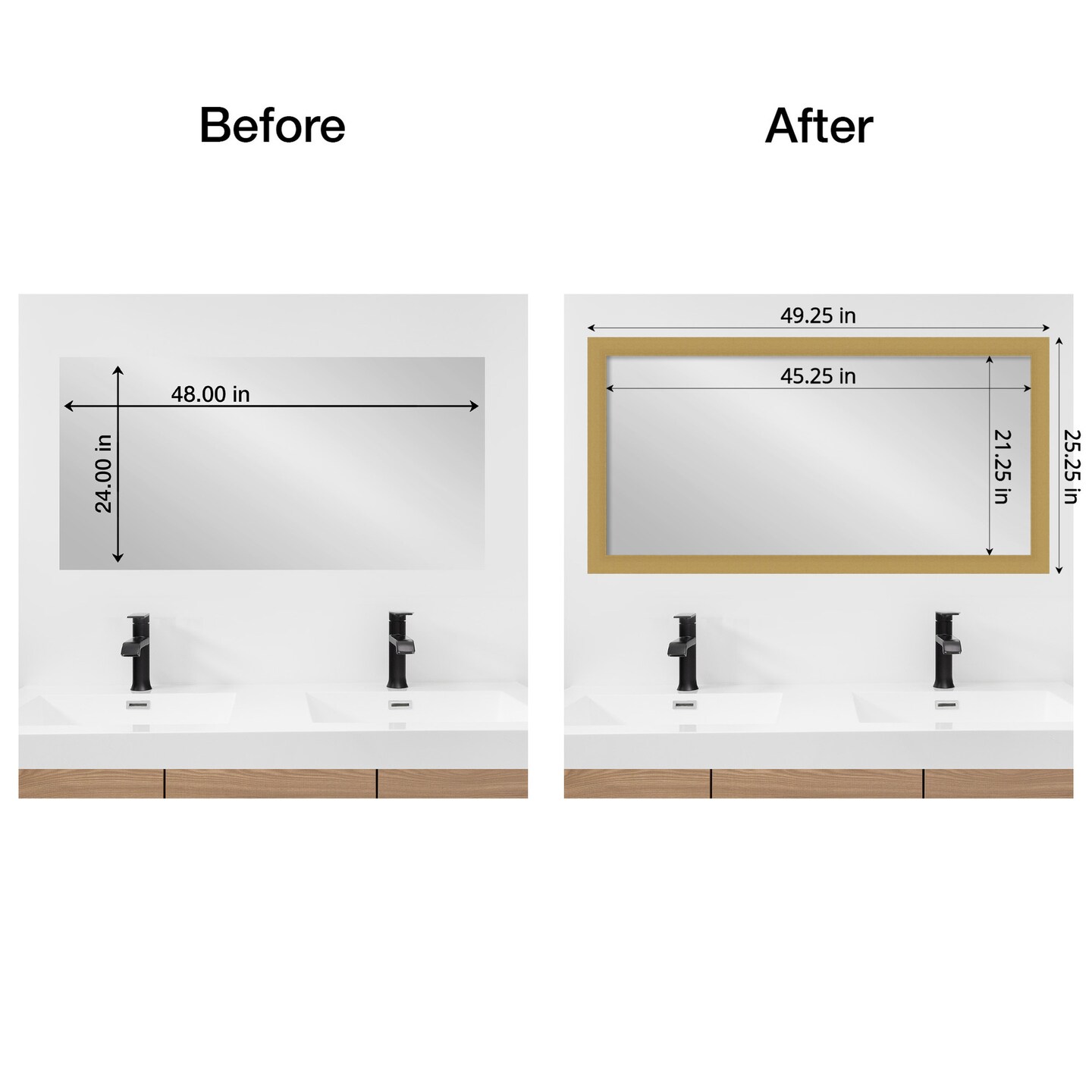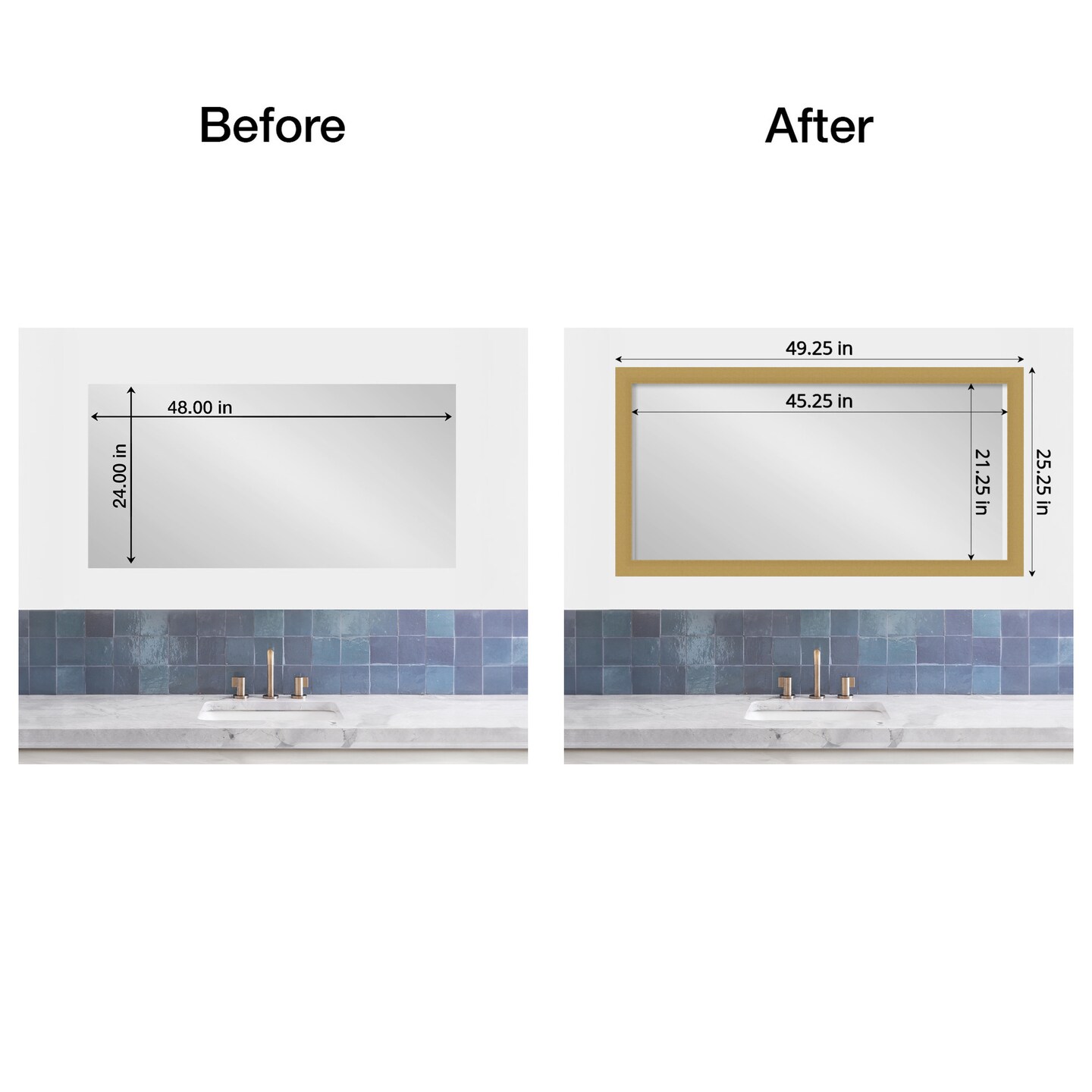 Amanti Art Mirror Makeover Bathroom Mirror Frame Border Kit - Fully Assembled Peel and Stick Frame - Mirror NOT Included - Grace Brushed Gold Trim