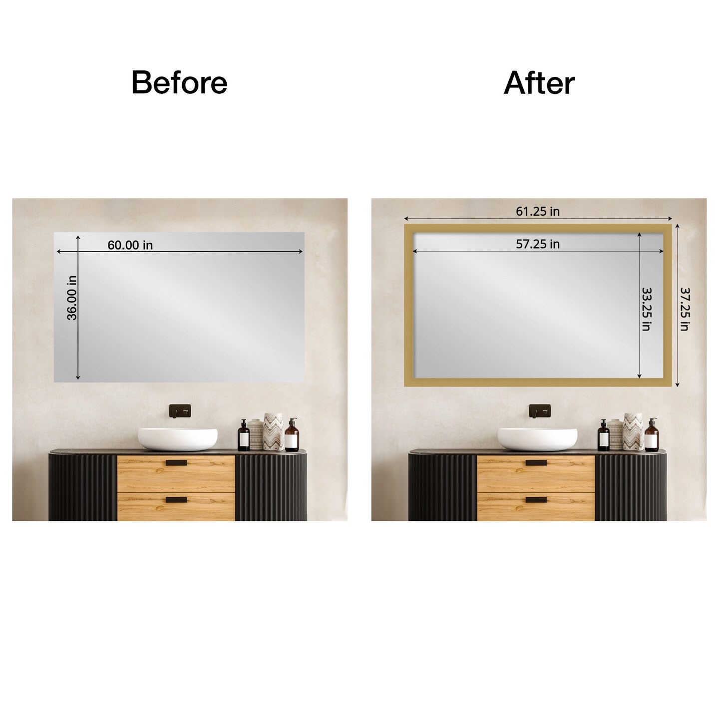 Amanti Art Mirror Makeover Bathroom Mirror Frame Border Kit - Fully Assembled Peel and Stick Frame - Mirror NOT Included - Grace Brushed Gold Trim