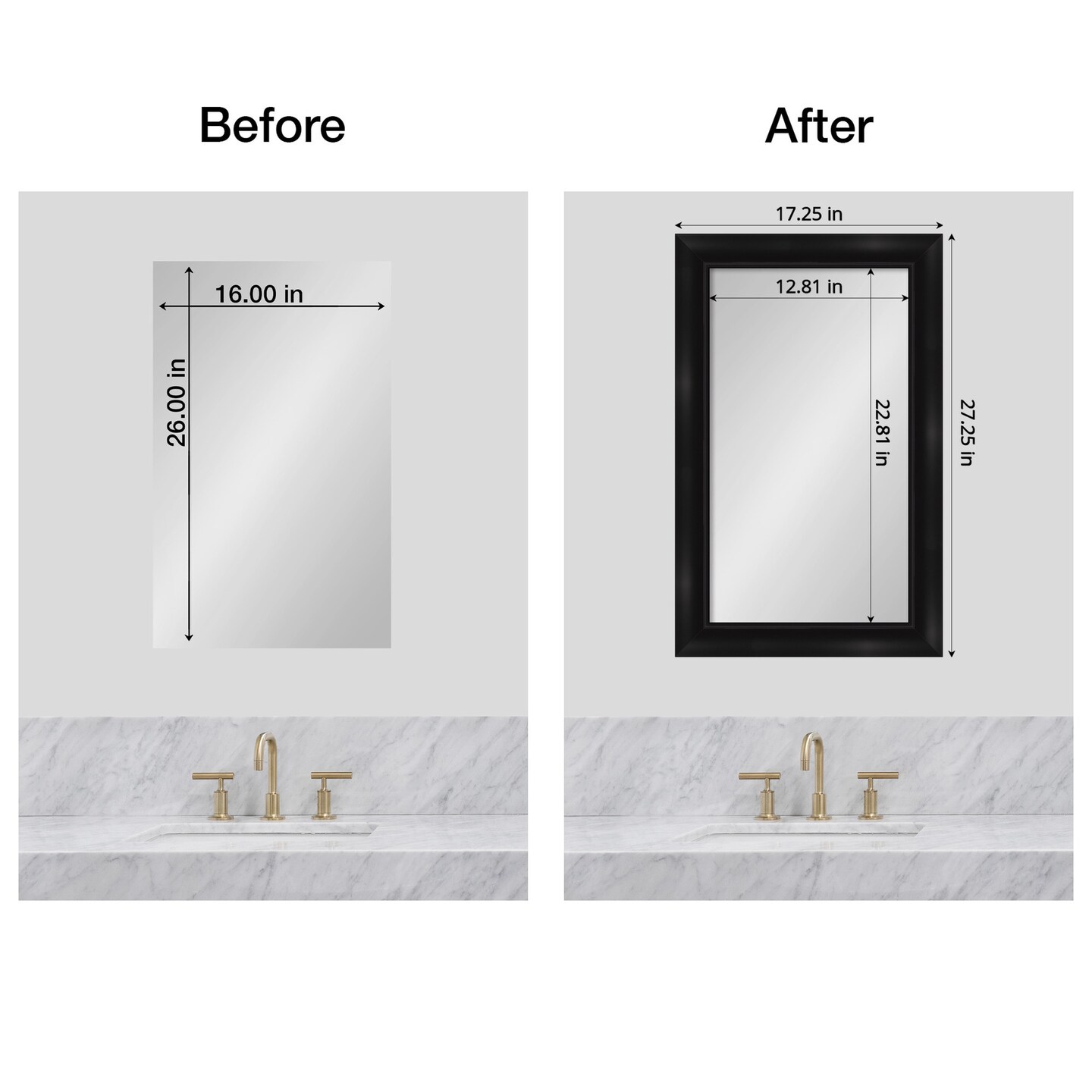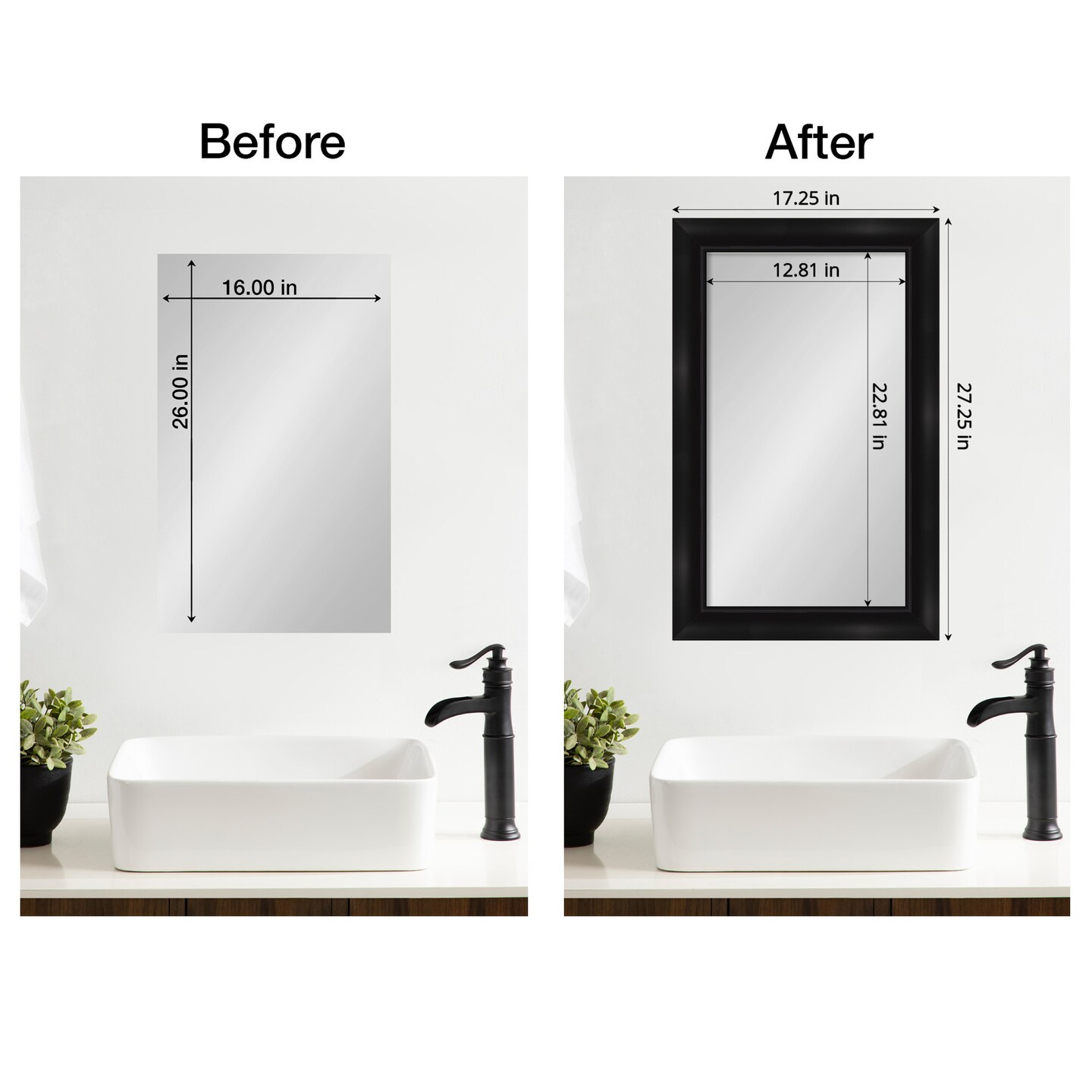 Amanti Art Mirror Makeover Bathroom Mirror Frame Border Kit - Fully Assembled Peel and Stick Frame - Mirror NOT Included - Grand Black Narrow Trim