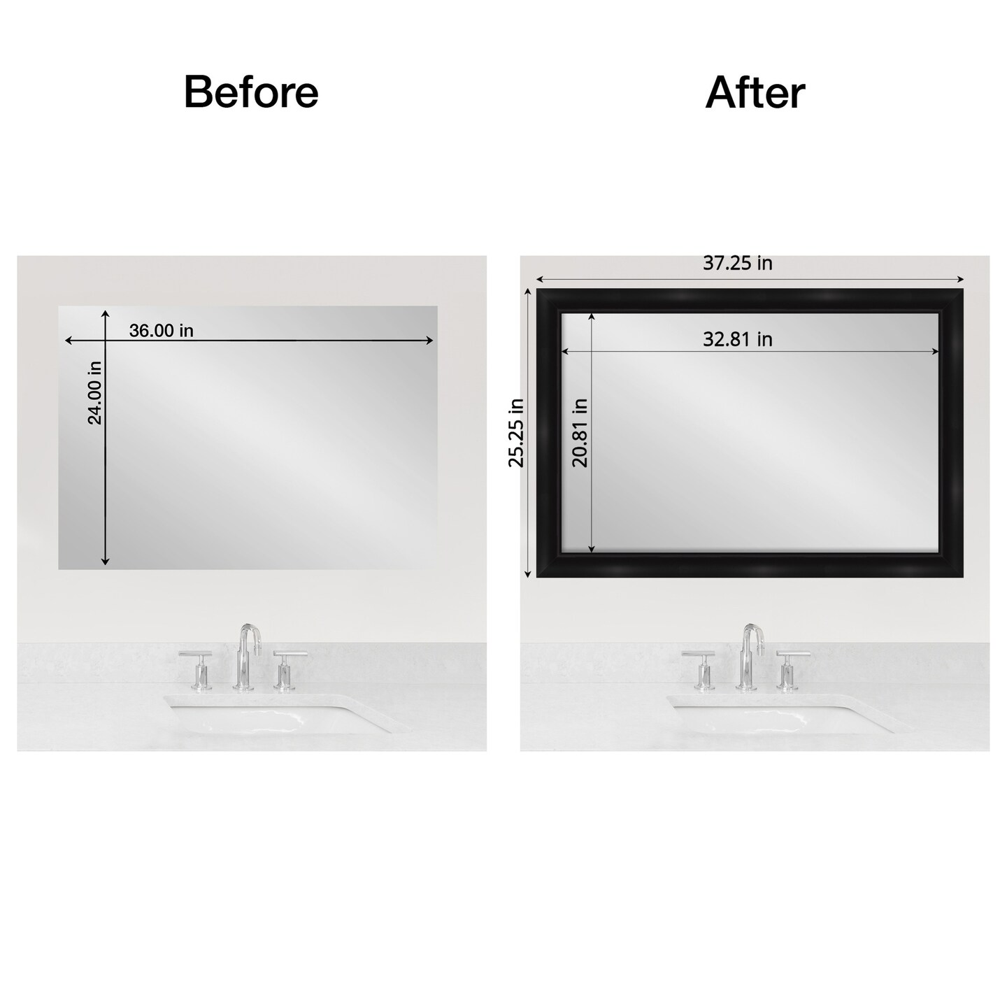 Amanti Art Mirror Makeover Bathroom Mirror Frame Border Kit - Fully Assembled Peel and Stick Frame - Mirror NOT Included - Grand Black Narrow Trim