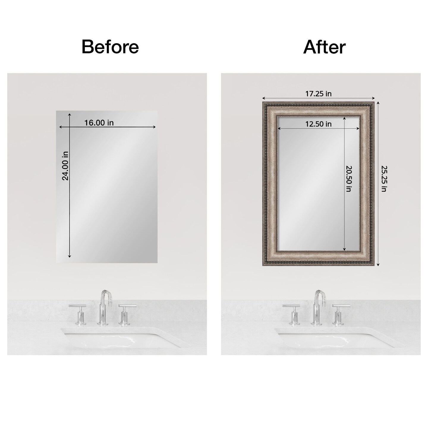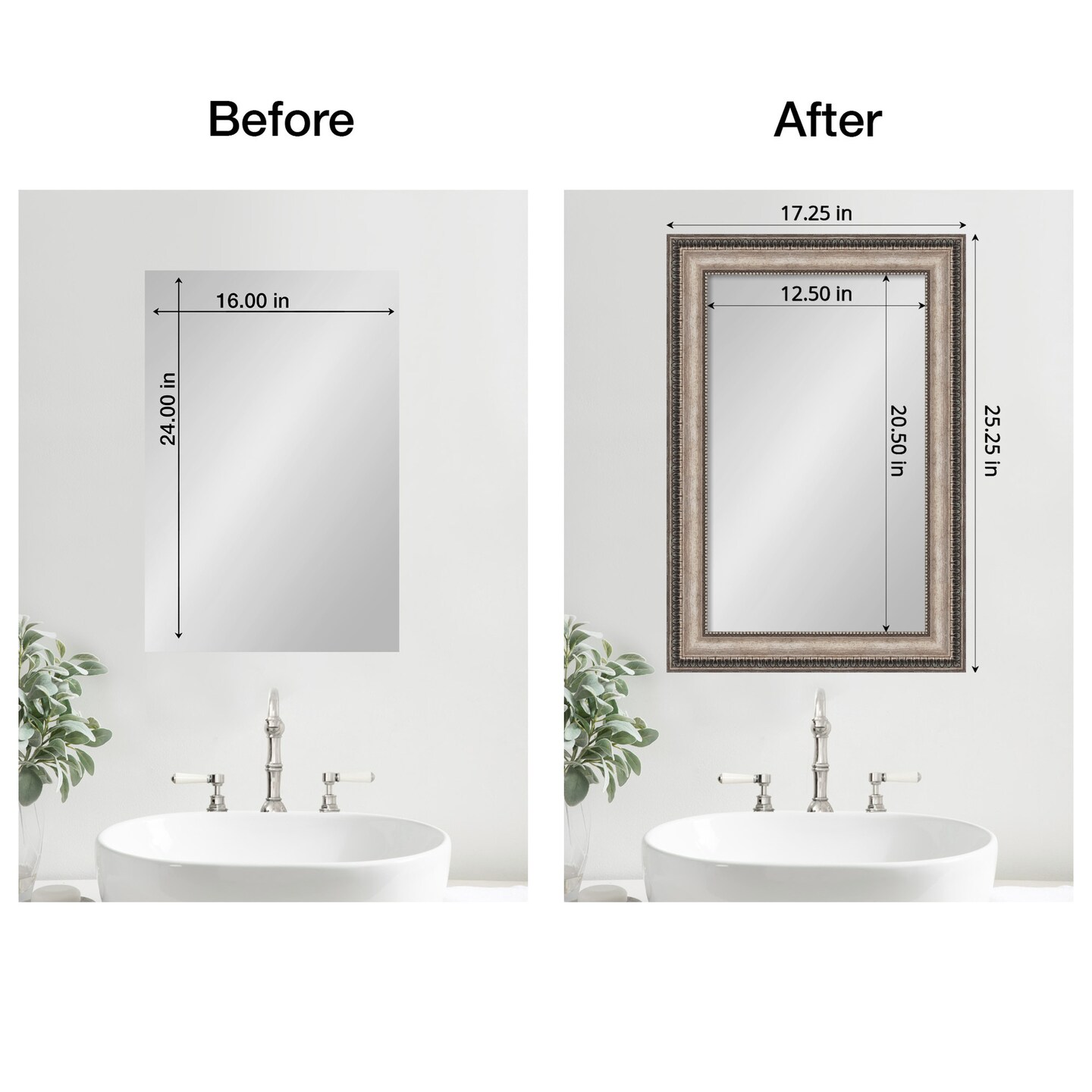 Amanti Art Mirror Makeover Bathroom Mirror Frame Border Kit - Fully Assembled Peel and Stick Frame - Mirror NOT Included - Lyla Ornate Silver Trim
