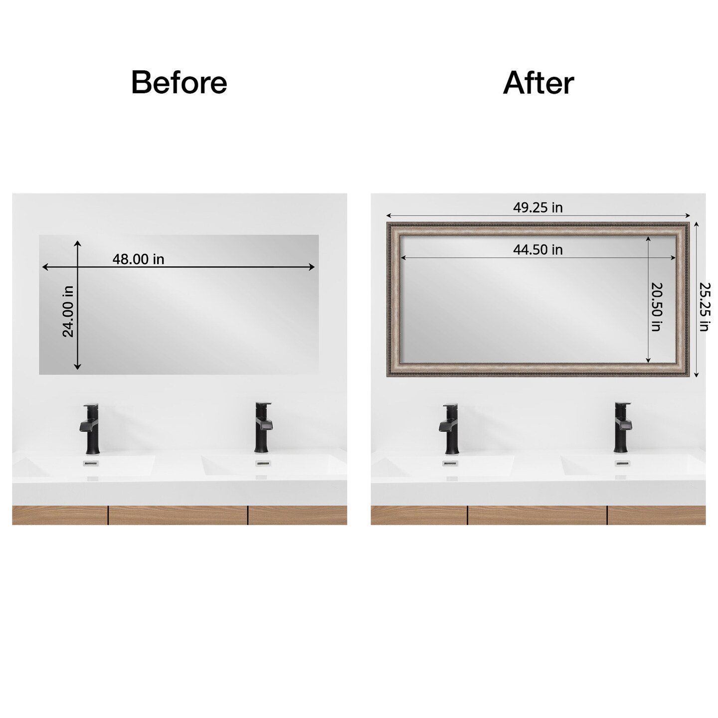 Amanti Art Mirror Makeover Bathroom Mirror Frame Border Kit - Fully Assembled Peel and Stick Frame - Mirror NOT Included - Lyla Ornate Silver Trim