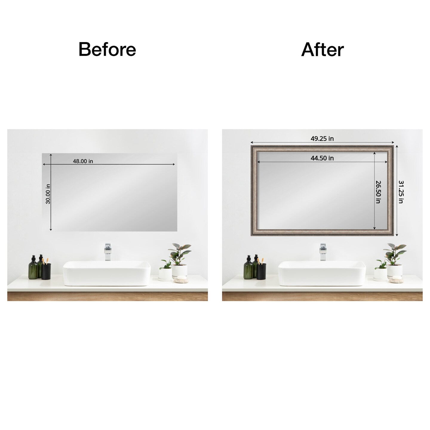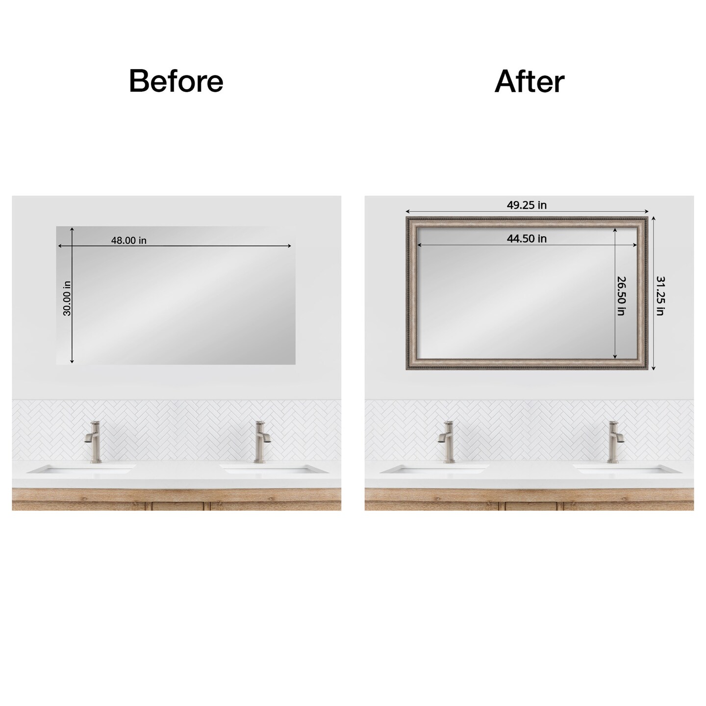 Amanti Art Mirror Makeover Bathroom Mirror Frame Border Kit - Fully Assembled Peel and Stick Frame - Mirror NOT Included - Lyla Ornate Silver Trim