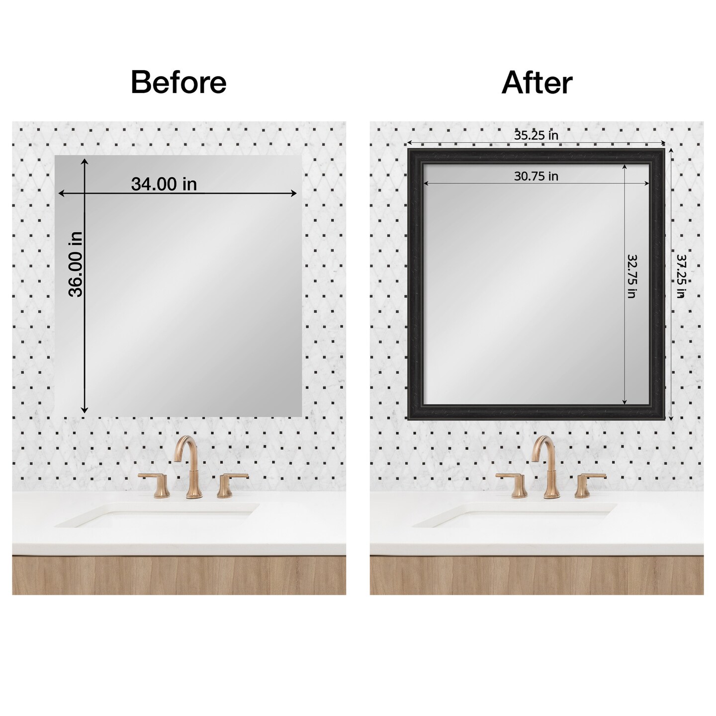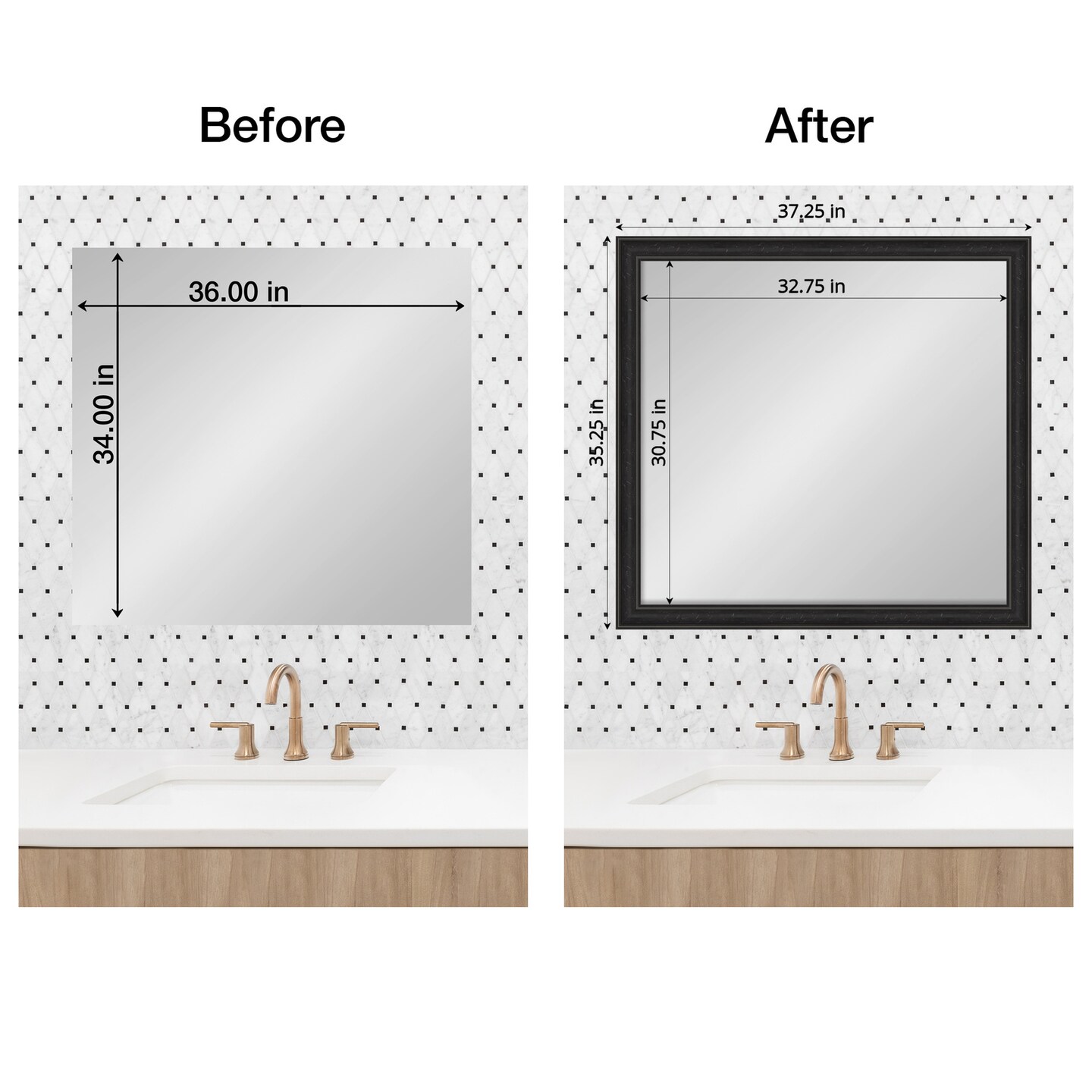 Amanti Art Mirror Makeover Bathroom Mirror Frame Border Kit - Fully Assembled Peel and Stick Frame - Mirror NOT Included - Shipwreck Narrow Trim