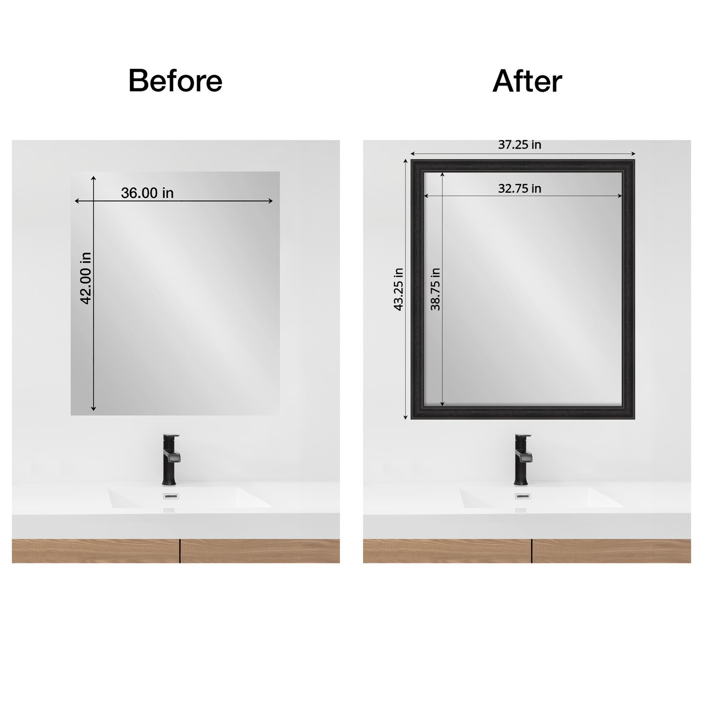 Amanti Art Mirror Makeover Bathroom Mirror Frame Border Kit - Fully Assembled Peel and Stick Frame - Mirror NOT Included - Shipwreck Narrow Trim
