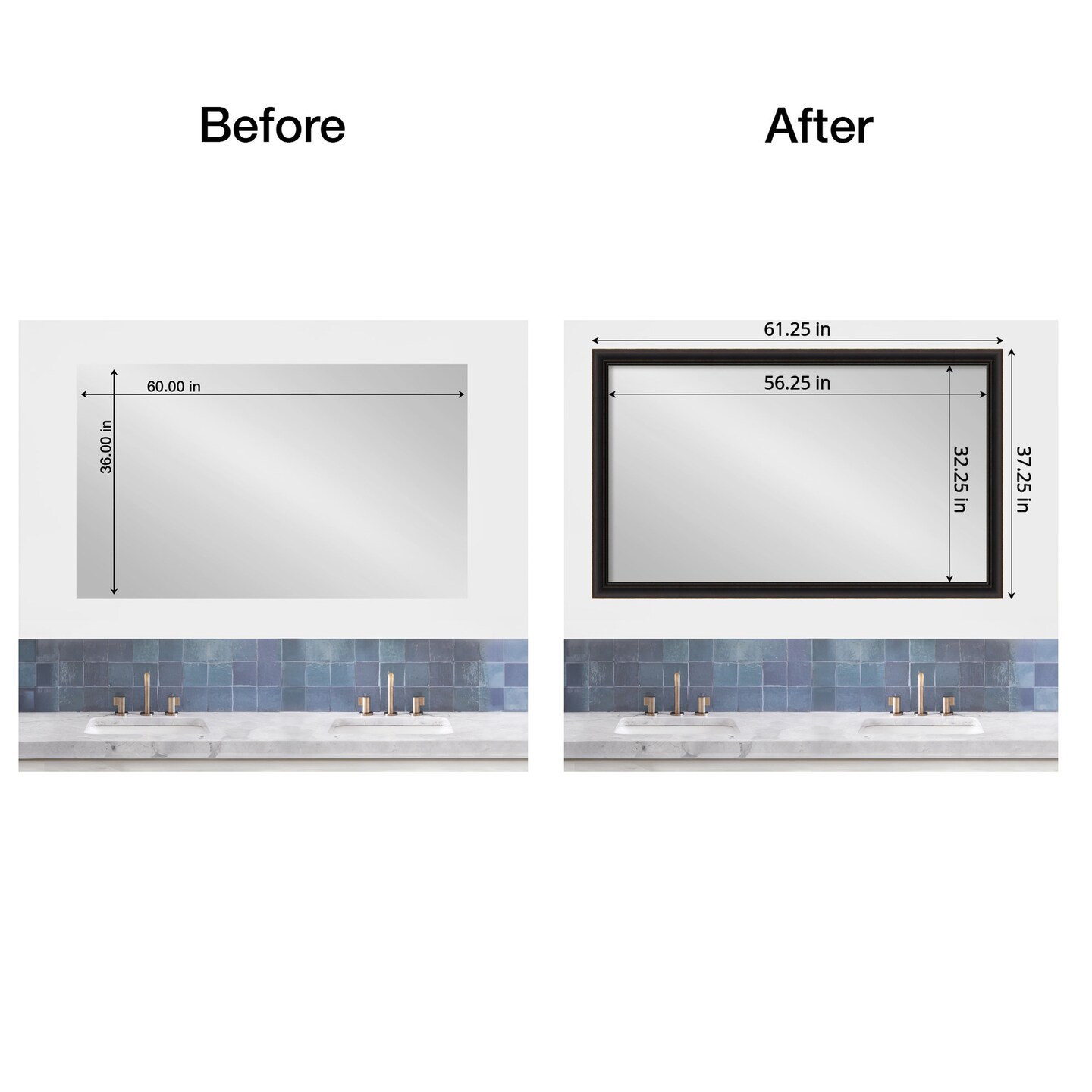 Amanti Art Mirror Makeover Bathroom Mirror Frame Border Kit - Fully Assembled Peel and Stick Frame - Mirror NOT Included - Trio Trim