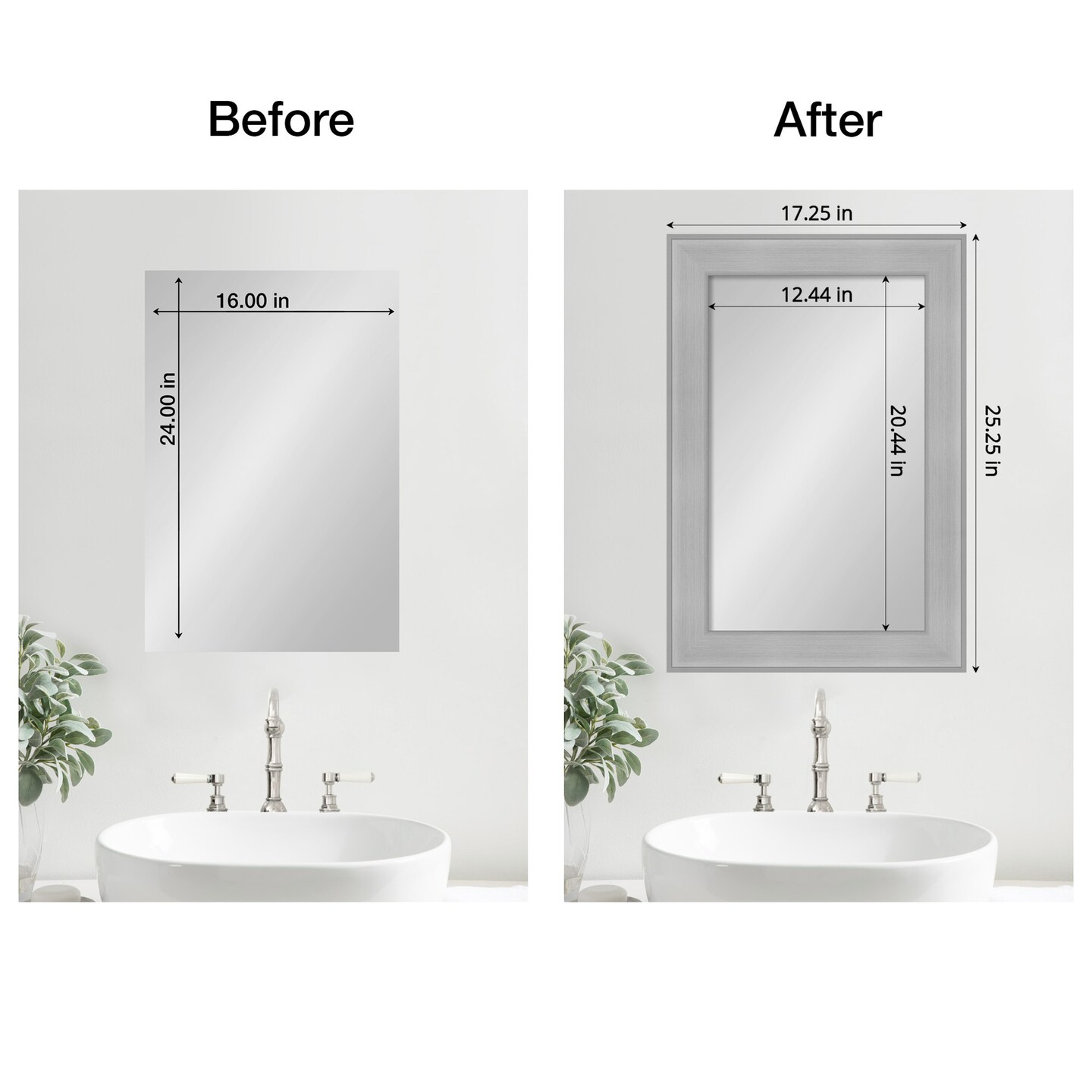 Amanti Art Mirror Makeover Bathroom Mirror Frame Border Kit - Fully Assembled Peel and Stick Frame - Mirror NOT Included - Vista Brushed Nickel Trim