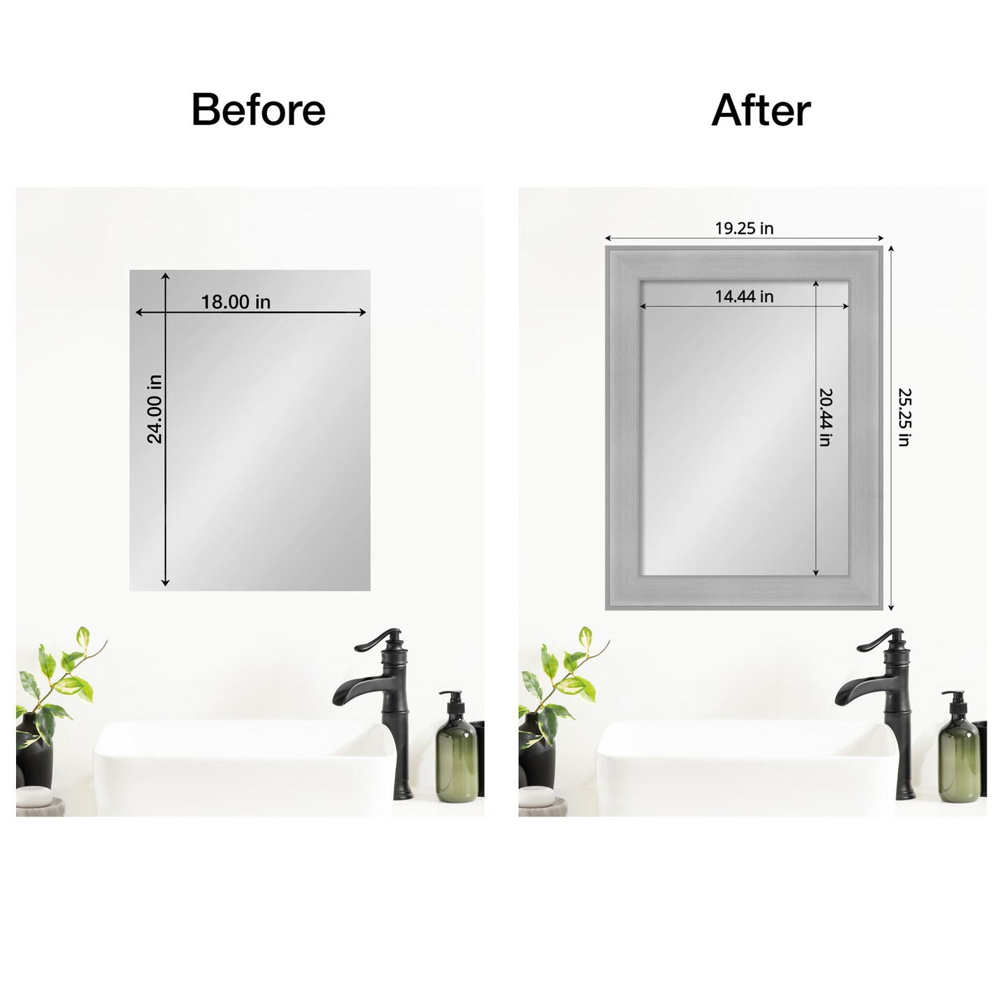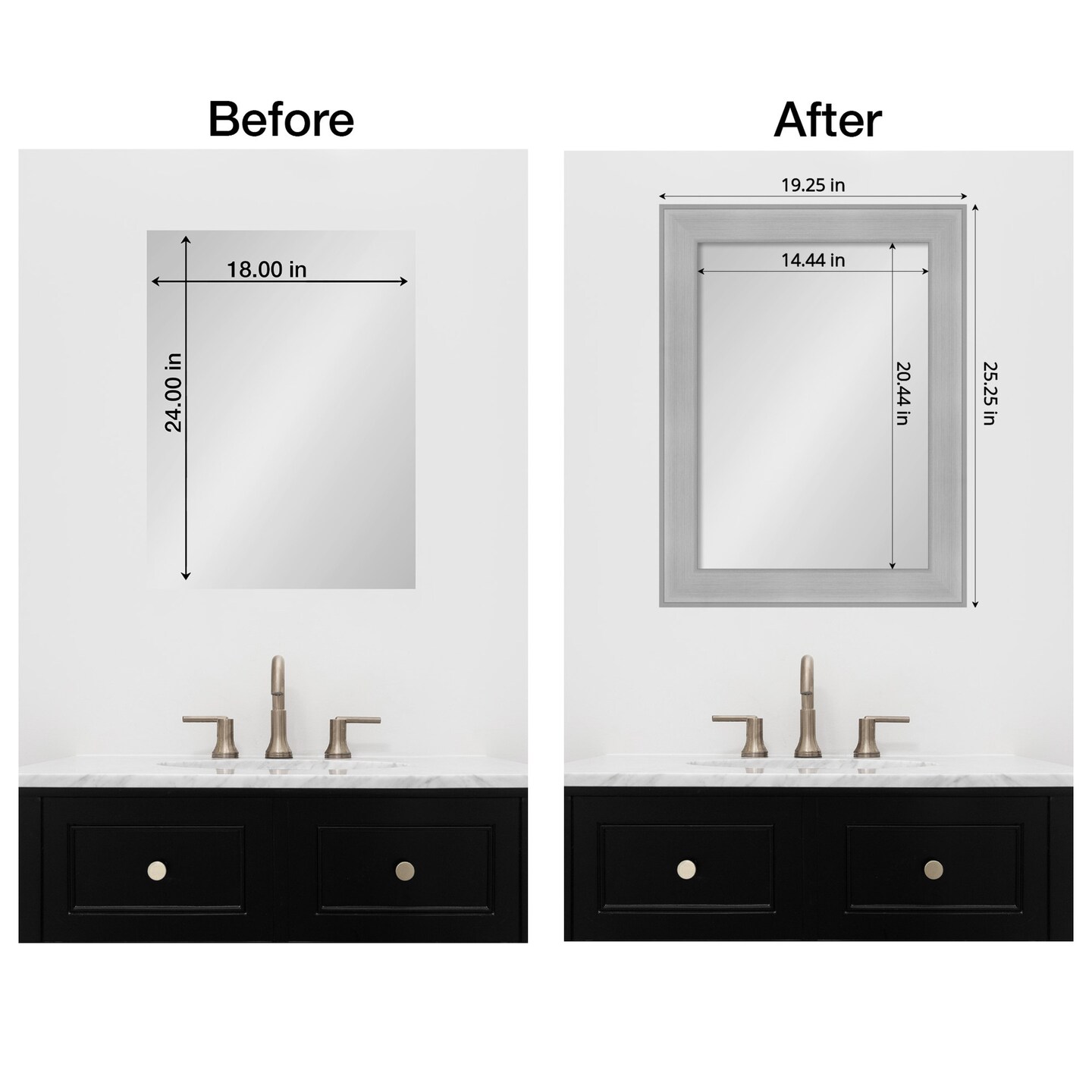 Amanti Art Mirror Makeover Bathroom Mirror Frame Border Kit - Fully Assembled Peel and Stick Frame - Mirror NOT Included - Vista Brushed Nickel Trim