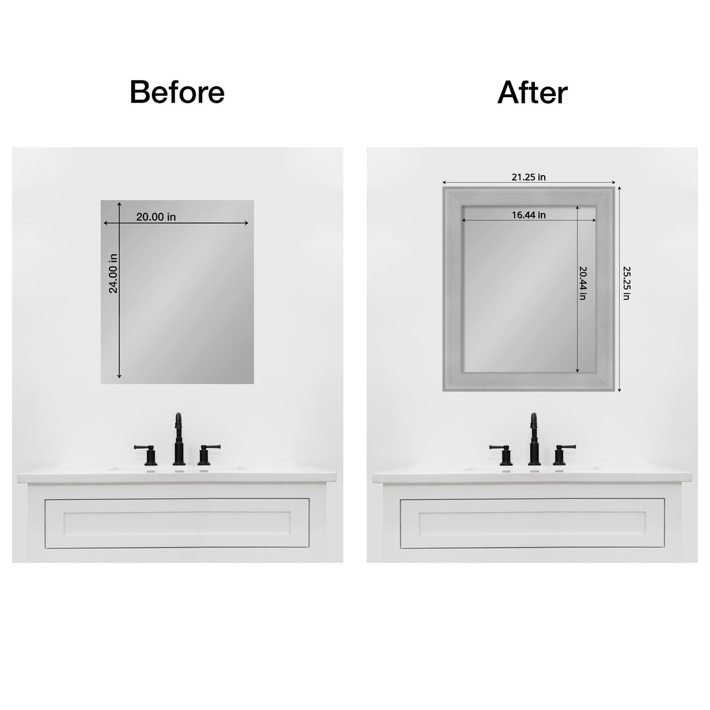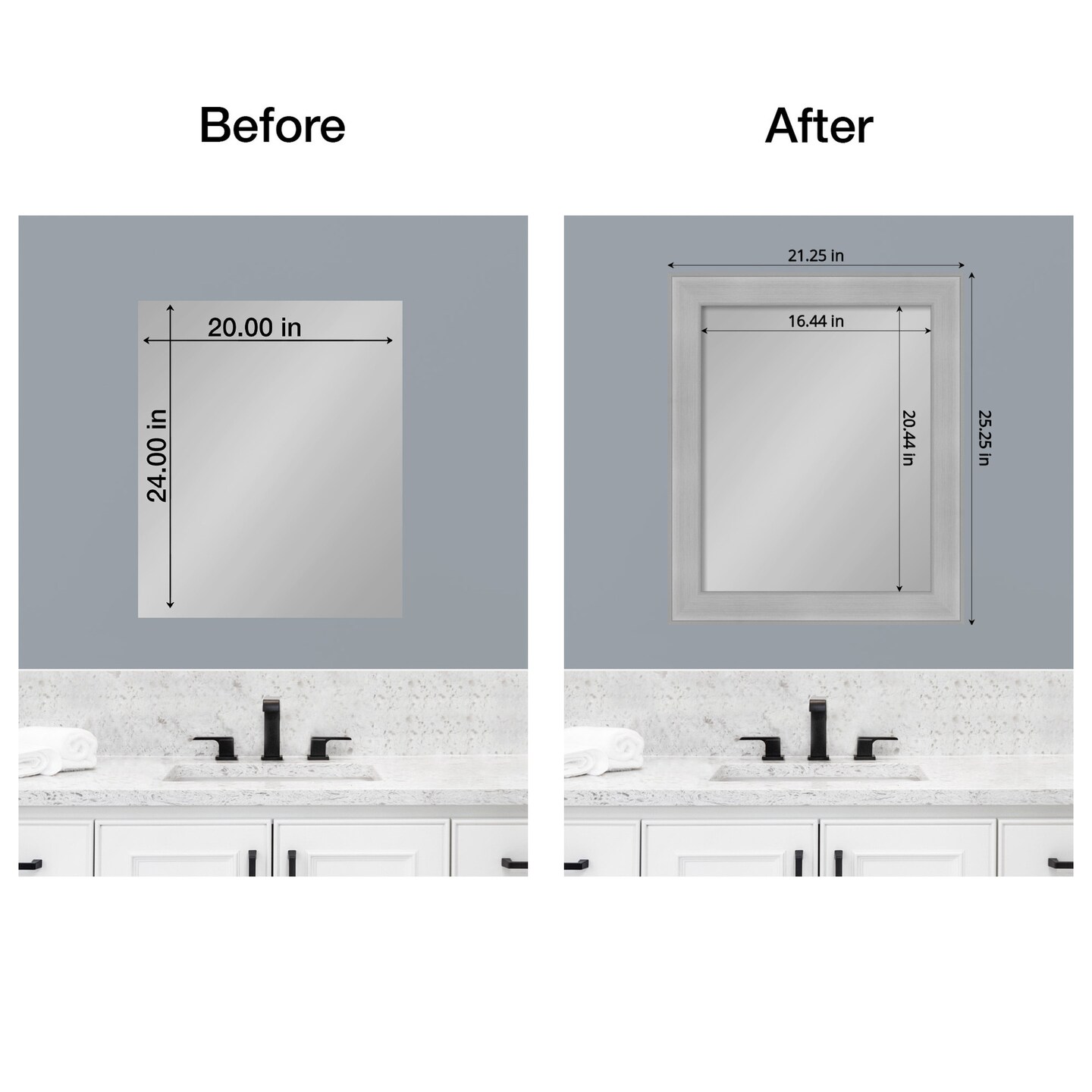 Amanti Art Mirror Makeover Bathroom Mirror Frame Border Kit - Fully Assembled Peel and Stick Frame - Mirror NOT Included - Vista Brushed Nickel Trim