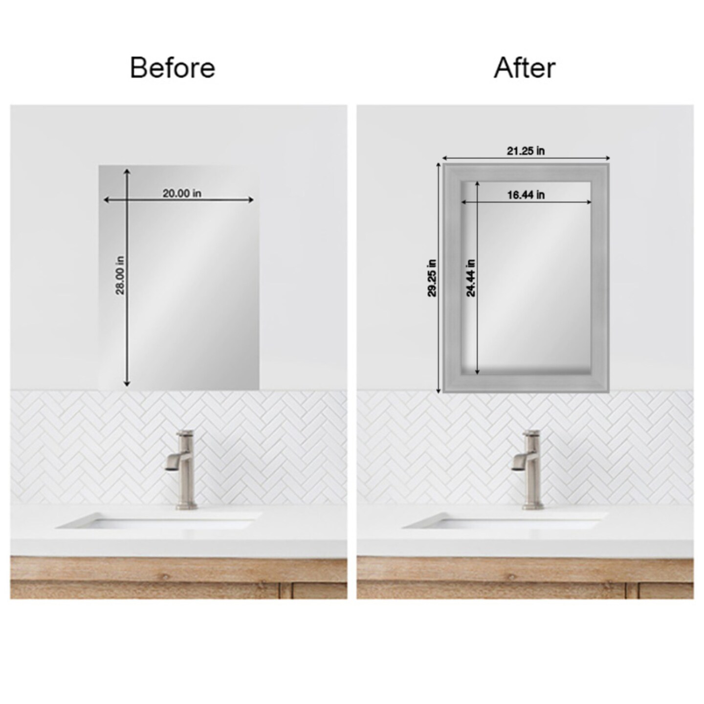 Amanti Art Mirror Makeover Bathroom Mirror Frame Border Kit - Fully Assembled Peel and Stick Frame - Mirror NOT Included - Vista Brushed Nickel Trim