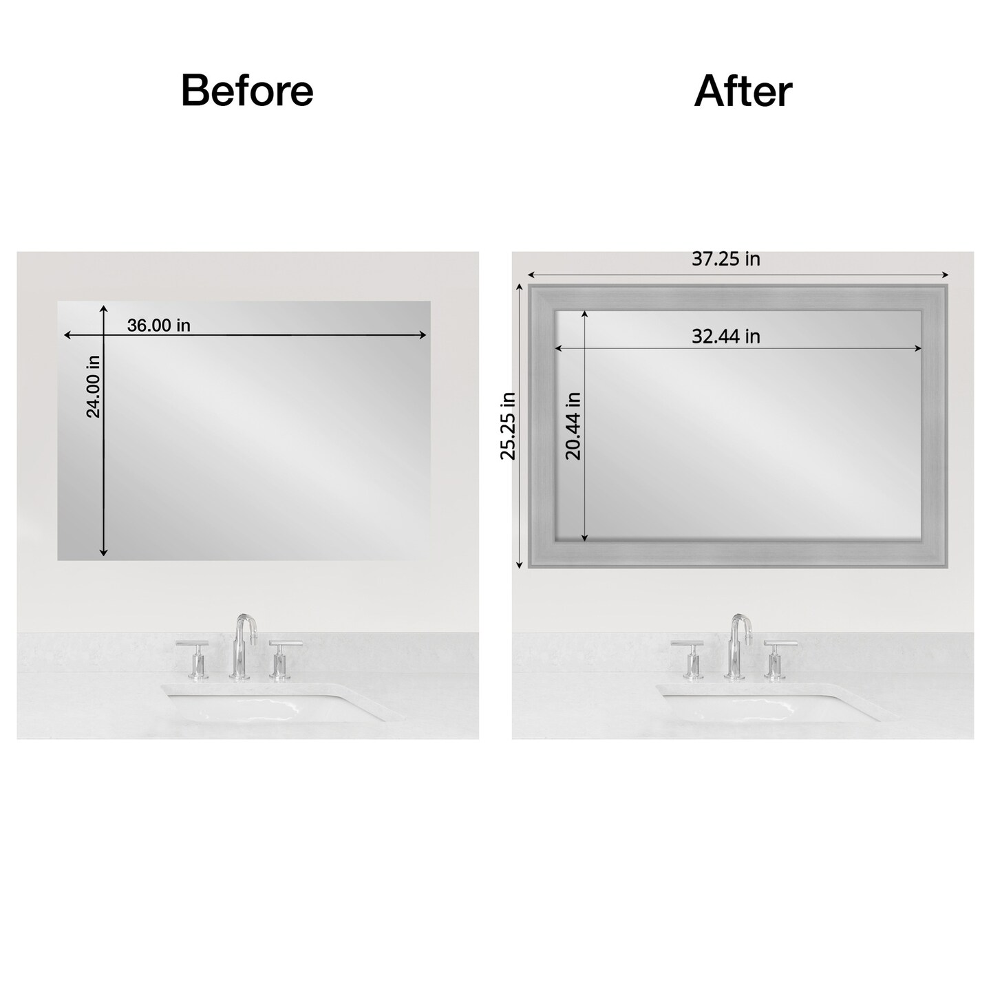 Amanti Art Mirror Makeover Bathroom Mirror Frame Border Kit - Fully Assembled Peel and Stick Frame - Mirror NOT Included - Vista Brushed Nickel Trim