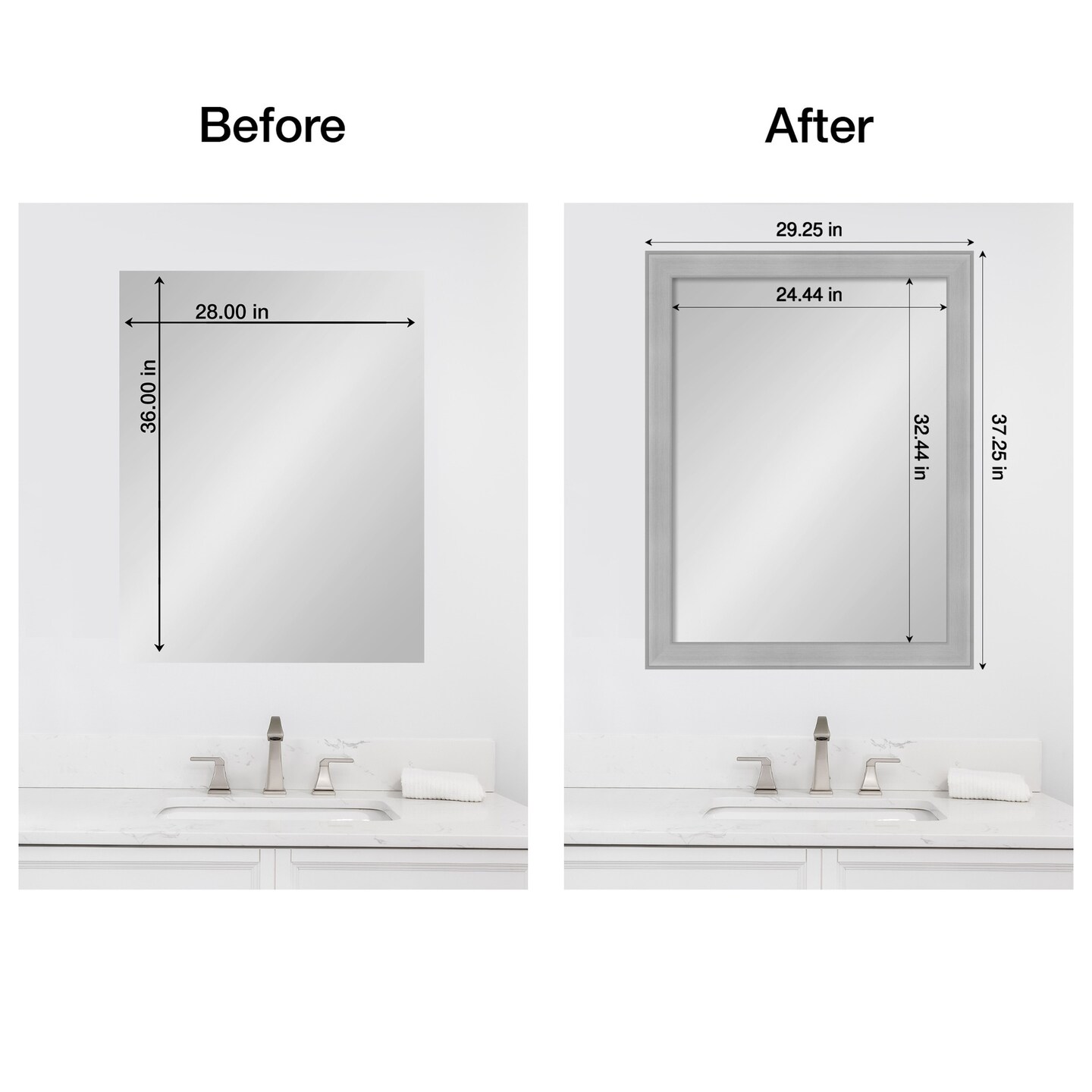 Amanti Art Mirror Makeover Bathroom Mirror Frame Border Kit - Fully Assembled Peel and Stick Frame - Mirror NOT Included - Vista Brushed Nickel Trim