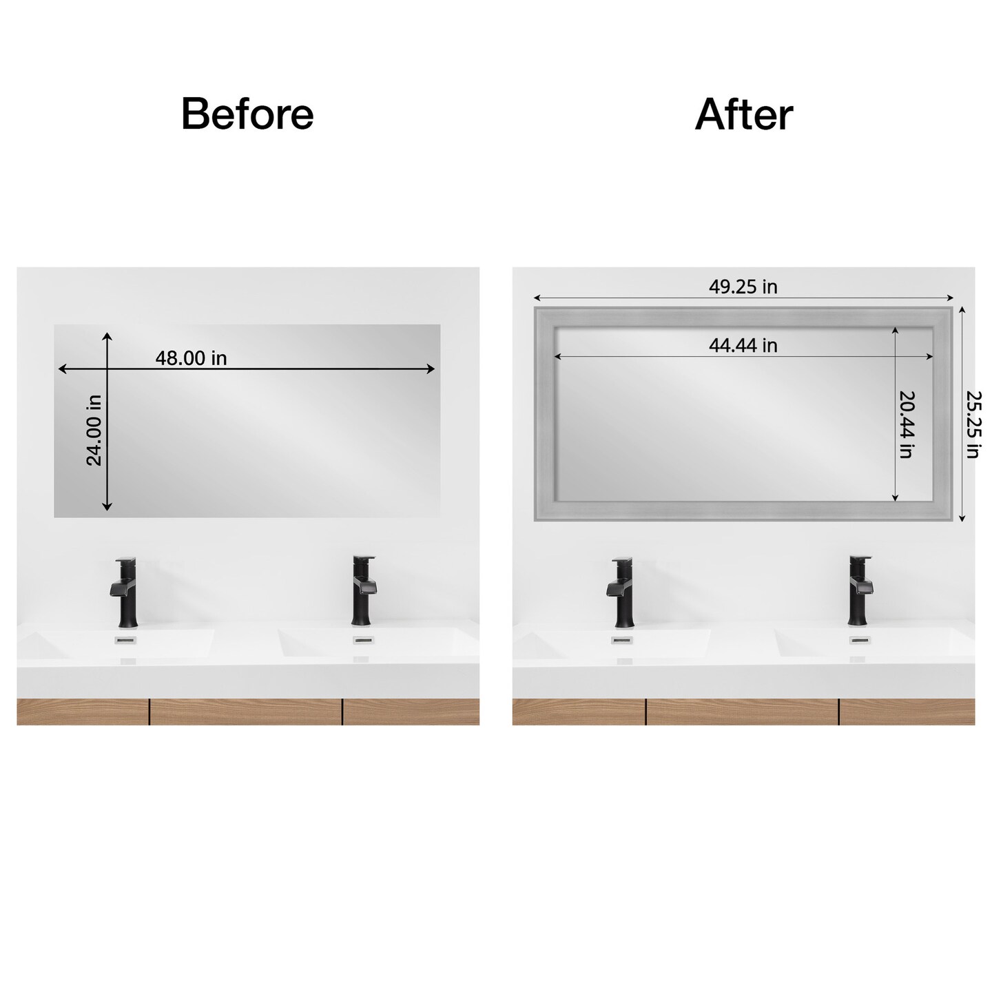 Amanti Art Mirror Makeover Bathroom Mirror Frame Border Kit - Fully Assembled Peel and Stick Frame - Mirror NOT Included - Vista Brushed Nickel Trim