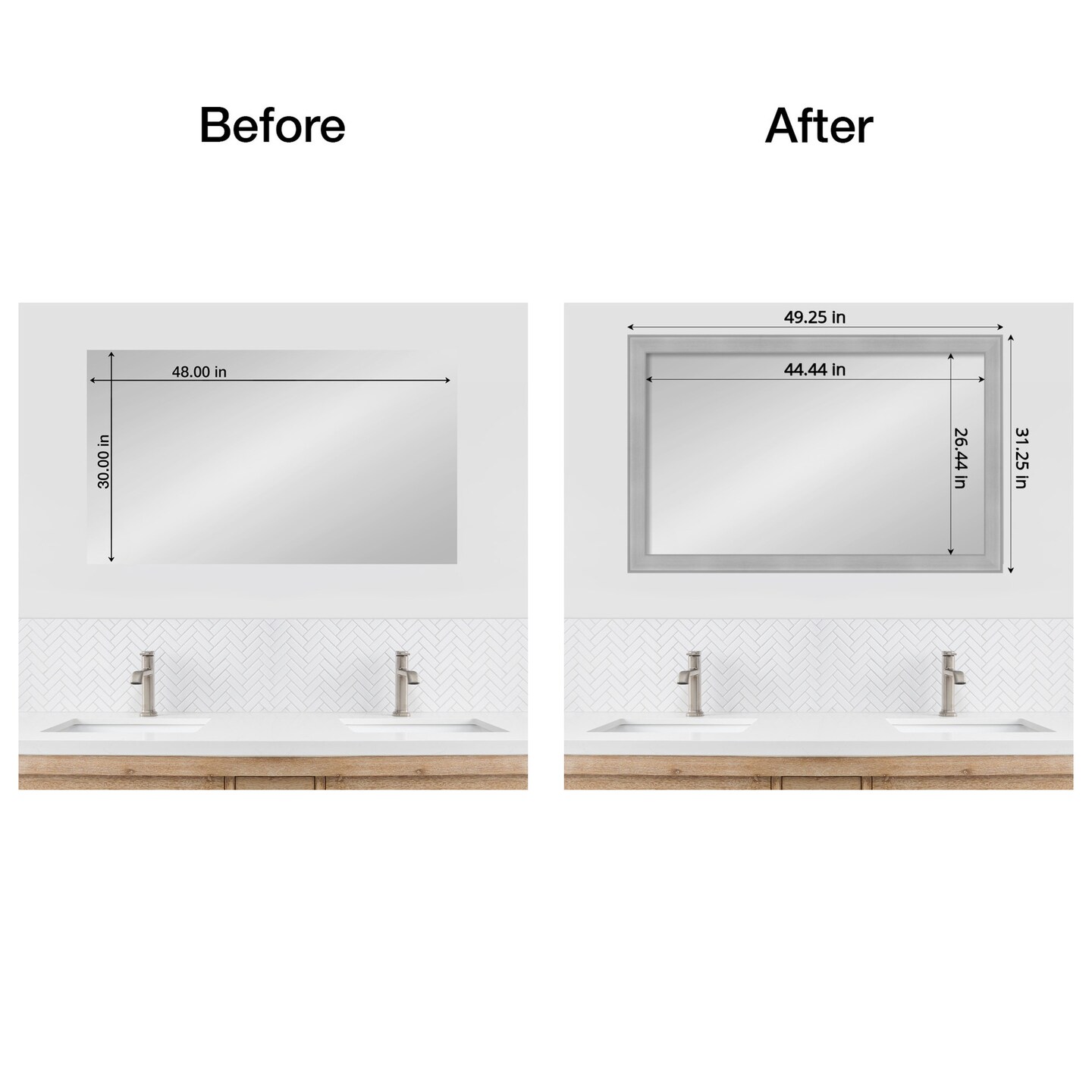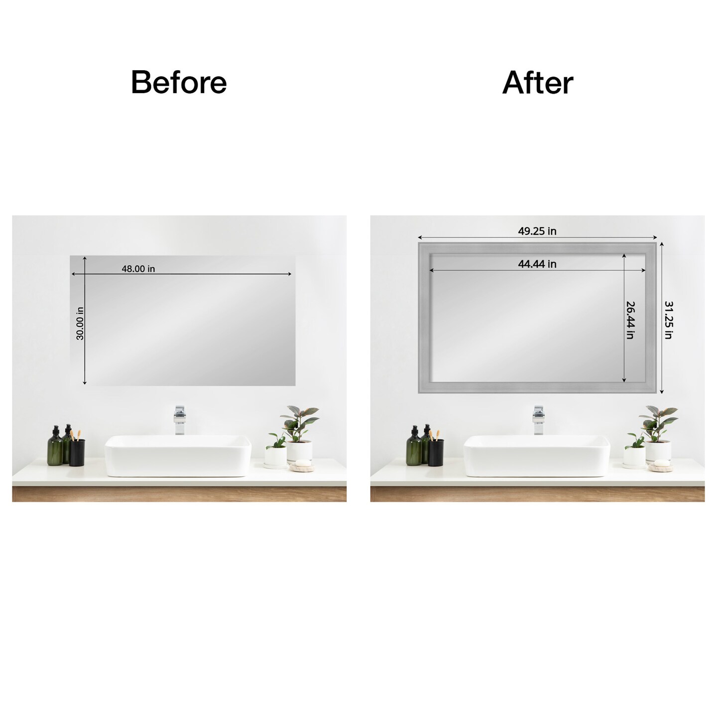 Amanti Art Mirror Makeover Bathroom Mirror Frame Border Kit - Fully Assembled Peel and Stick Frame - Mirror NOT Included - Vista Brushed Nickel Trim