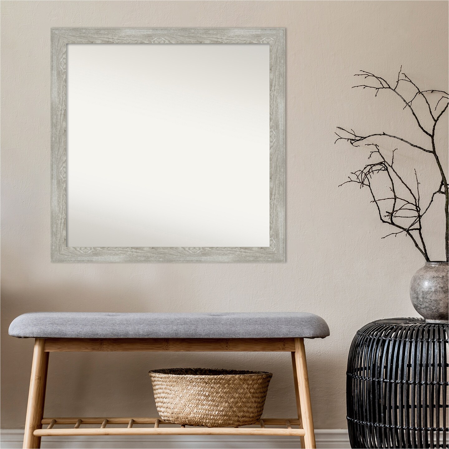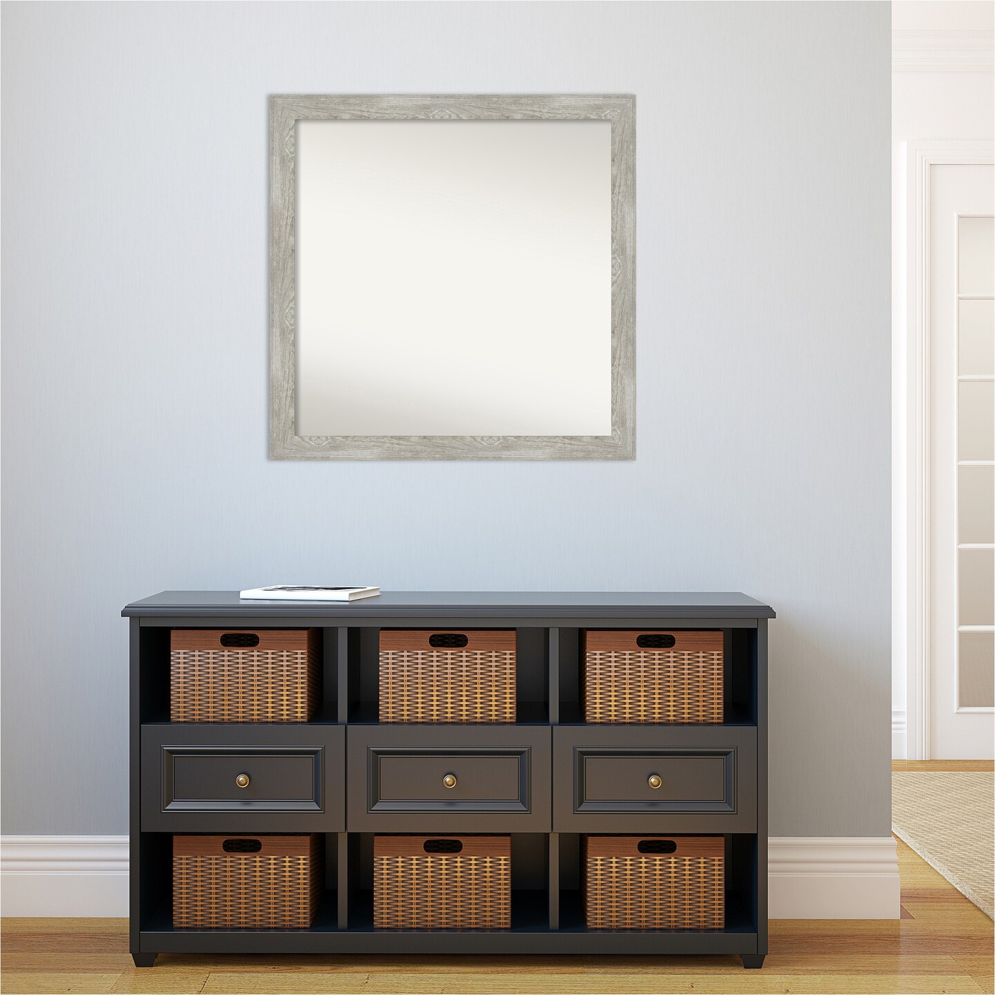 Amanti Art Non-Beveled Wall Mirror, Dove Greywash Narrow Frame
