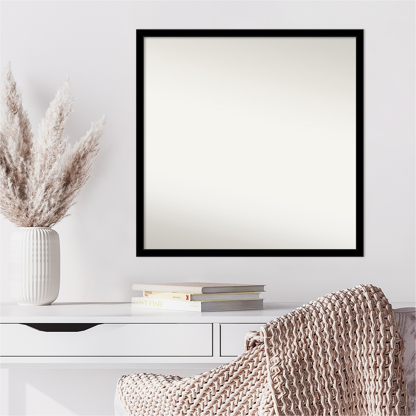 Amanti Art Non-Beveled Wall Mirror, Jet Black Frame