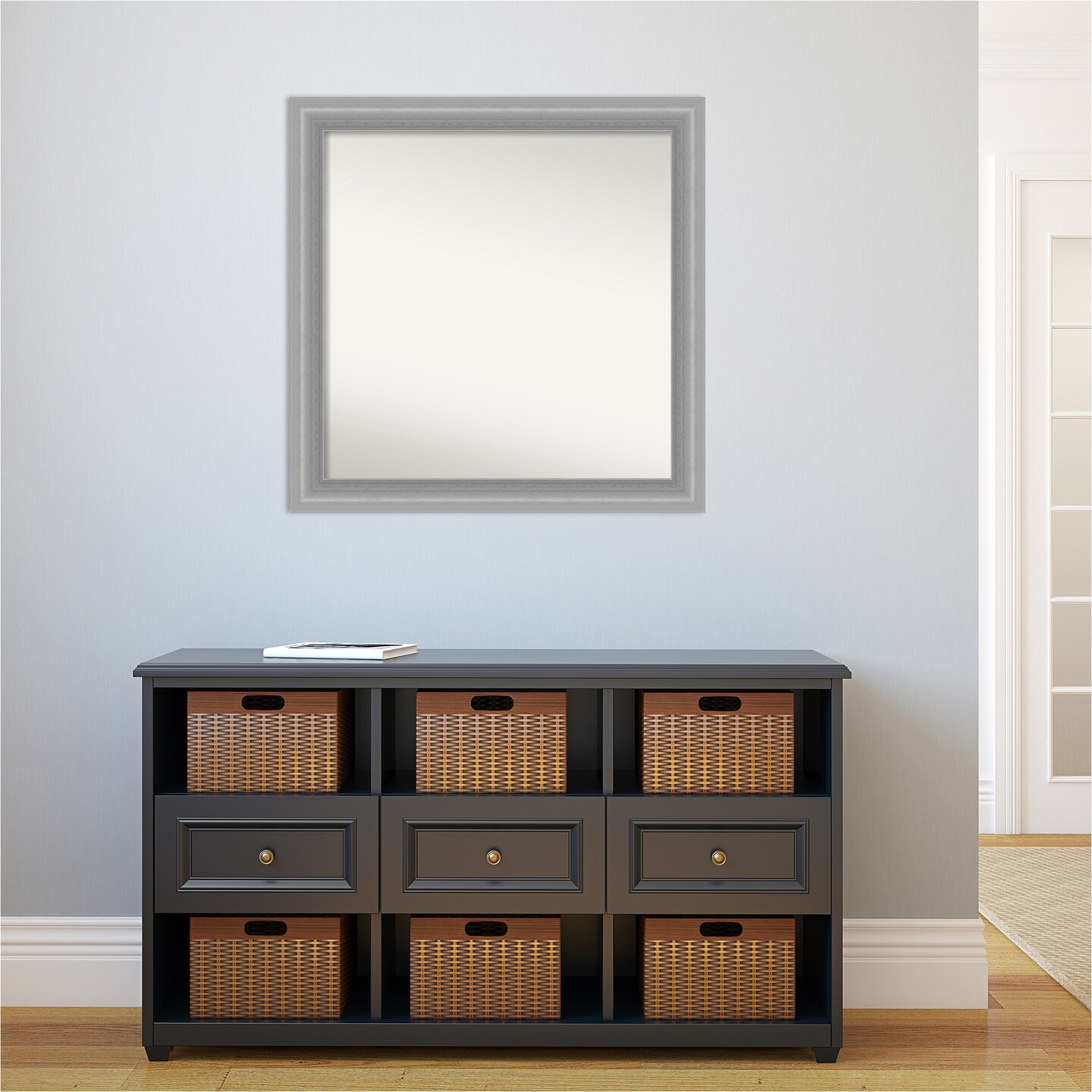 Amanti Art Non-Beveled Wall Mirror, Peak Polished Nickel Narrow Frame