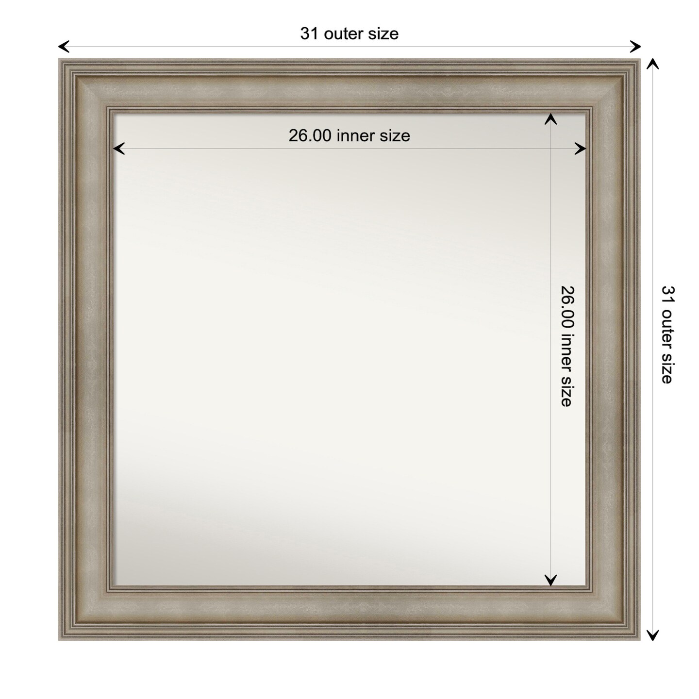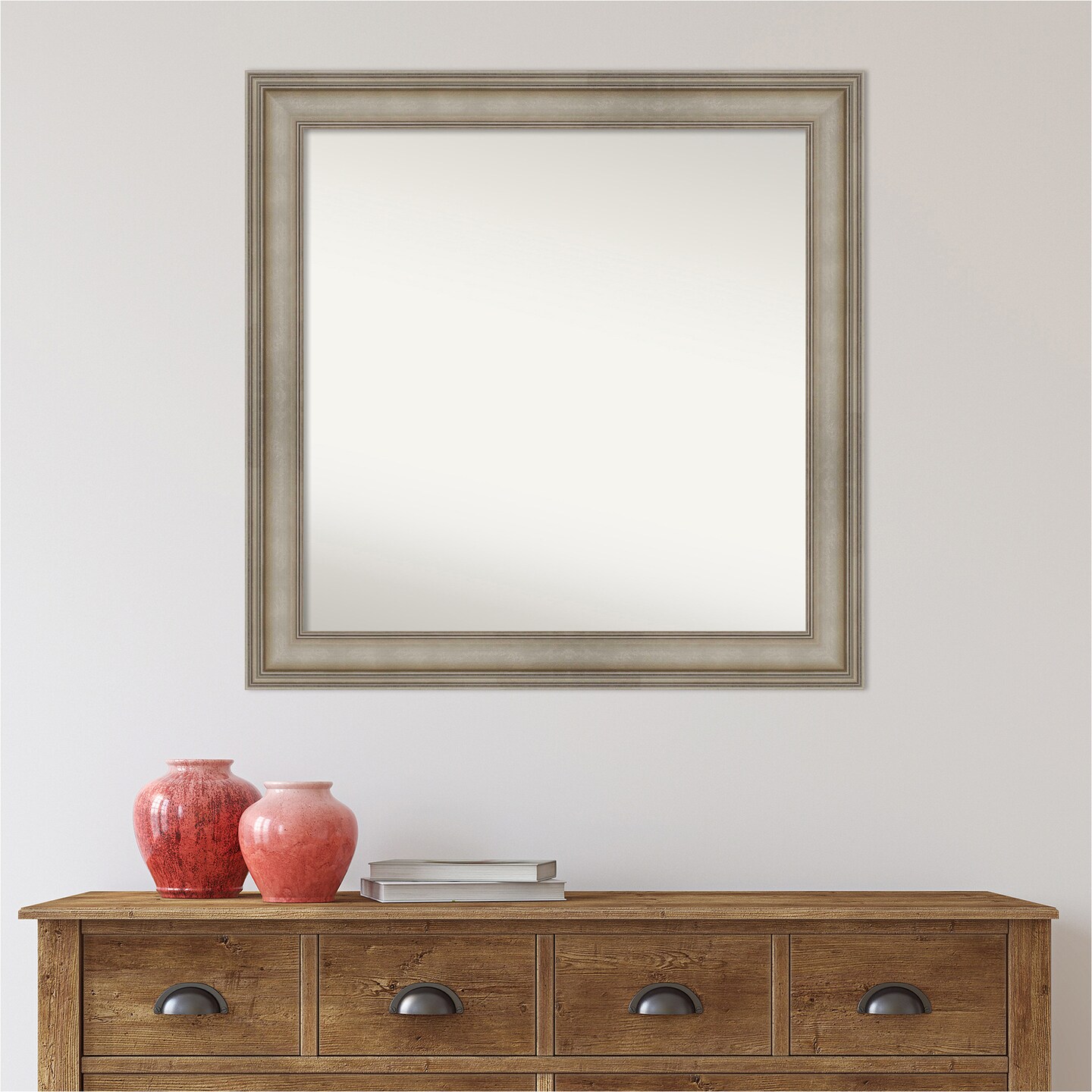 Amanti Art Non-Beveled Wood Wall Mirror, Mezzanine Antique Silver Narrow Frame