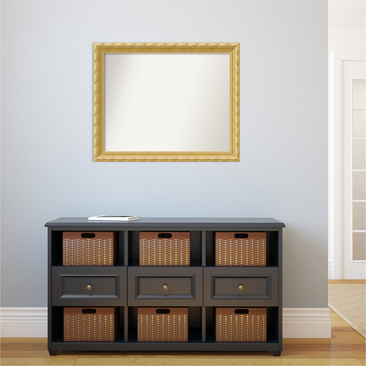 Amanti Art Non-Beveled Wood Wall Mirror, Versailles Gold Frame