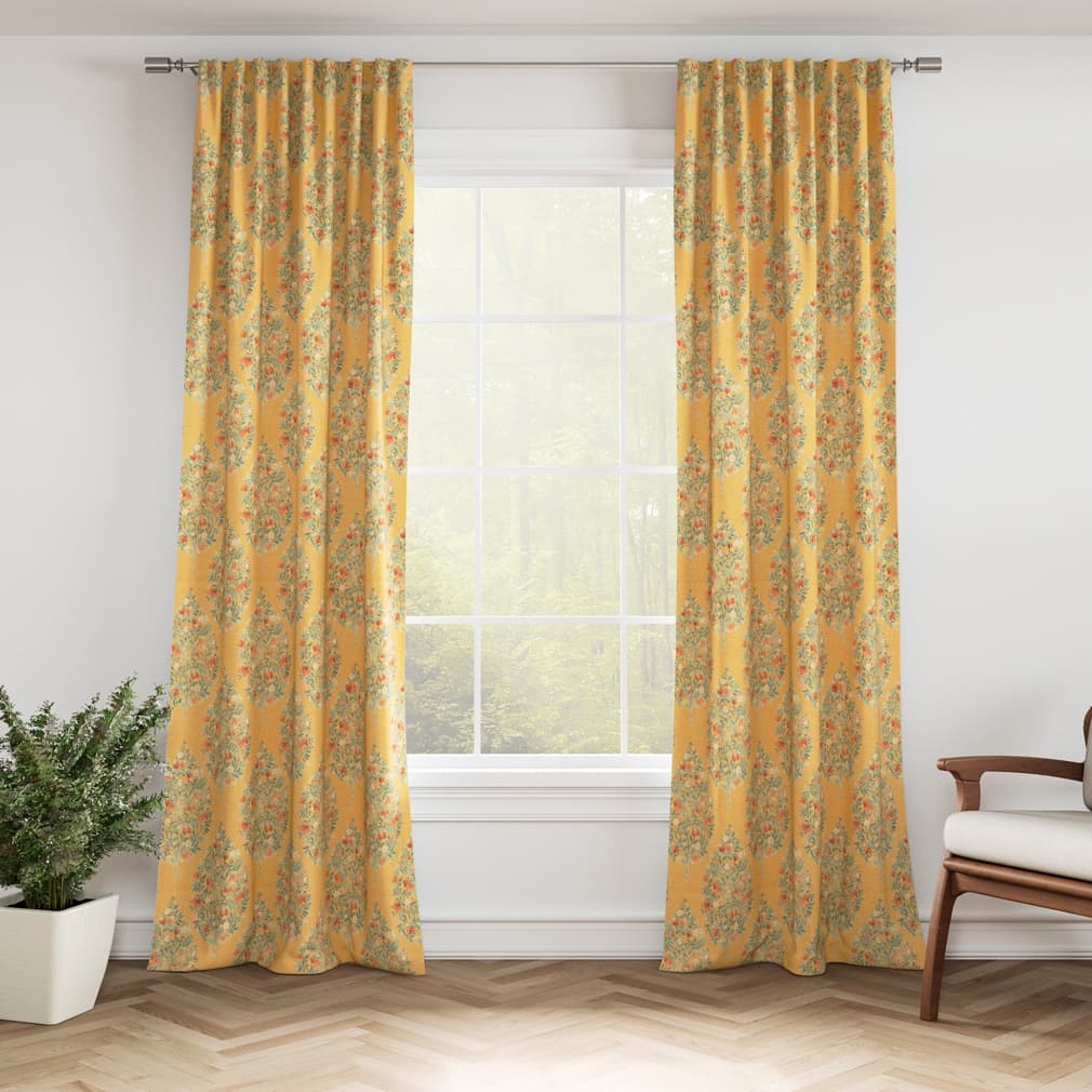 Amber - Aqua & Teal,Gold & Yellow Floral Upholstery Fabric 54 Inches"