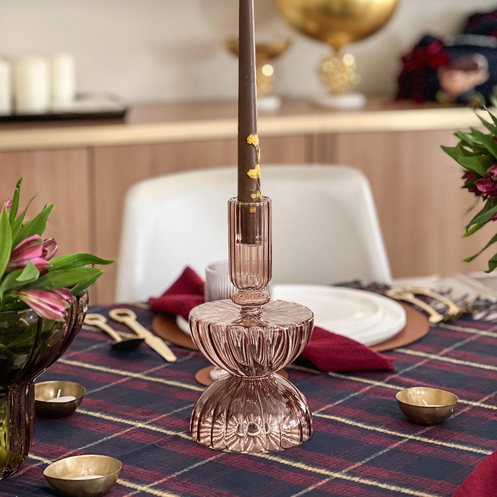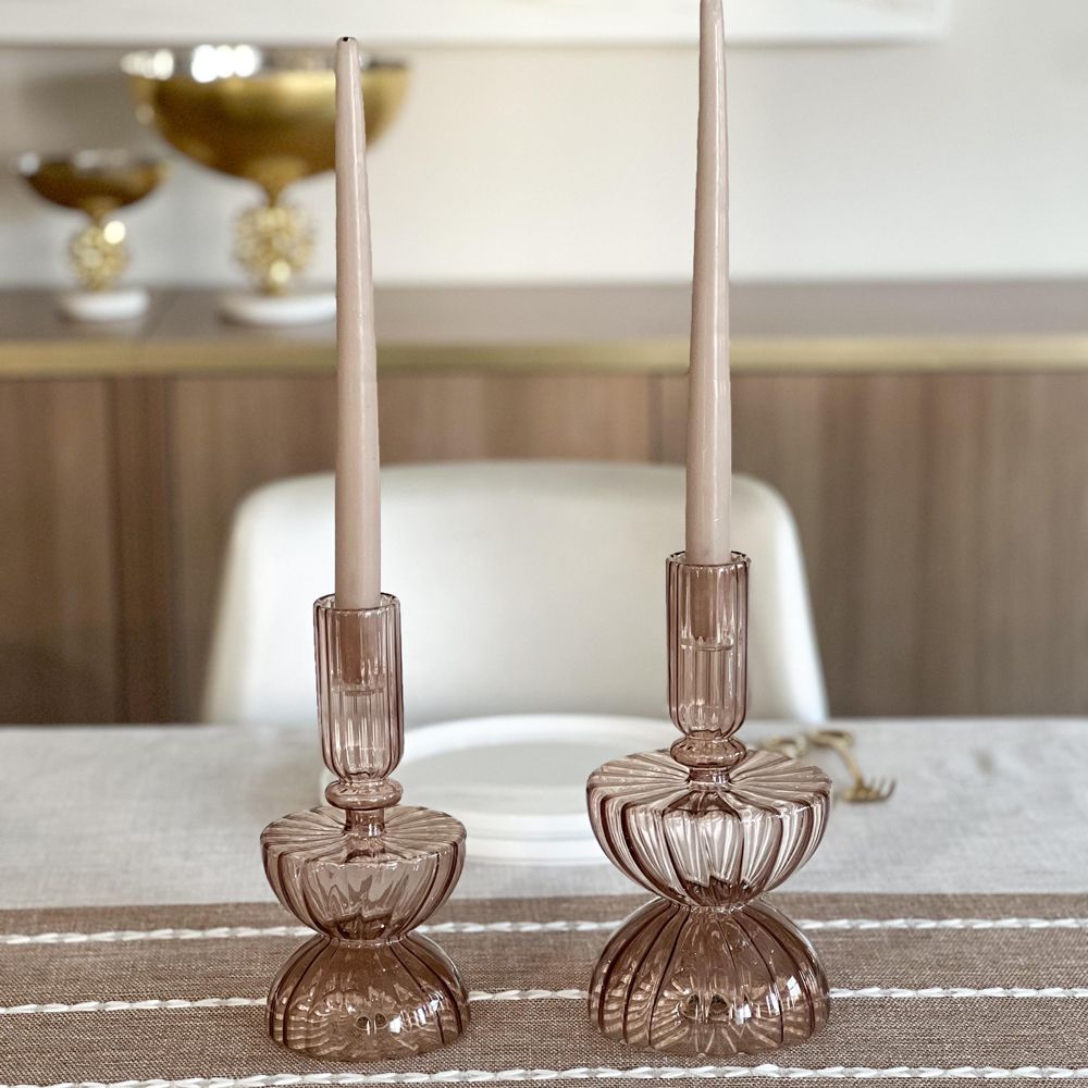 Amber Ribbed Free Form Candle Holder By Kinor Decor