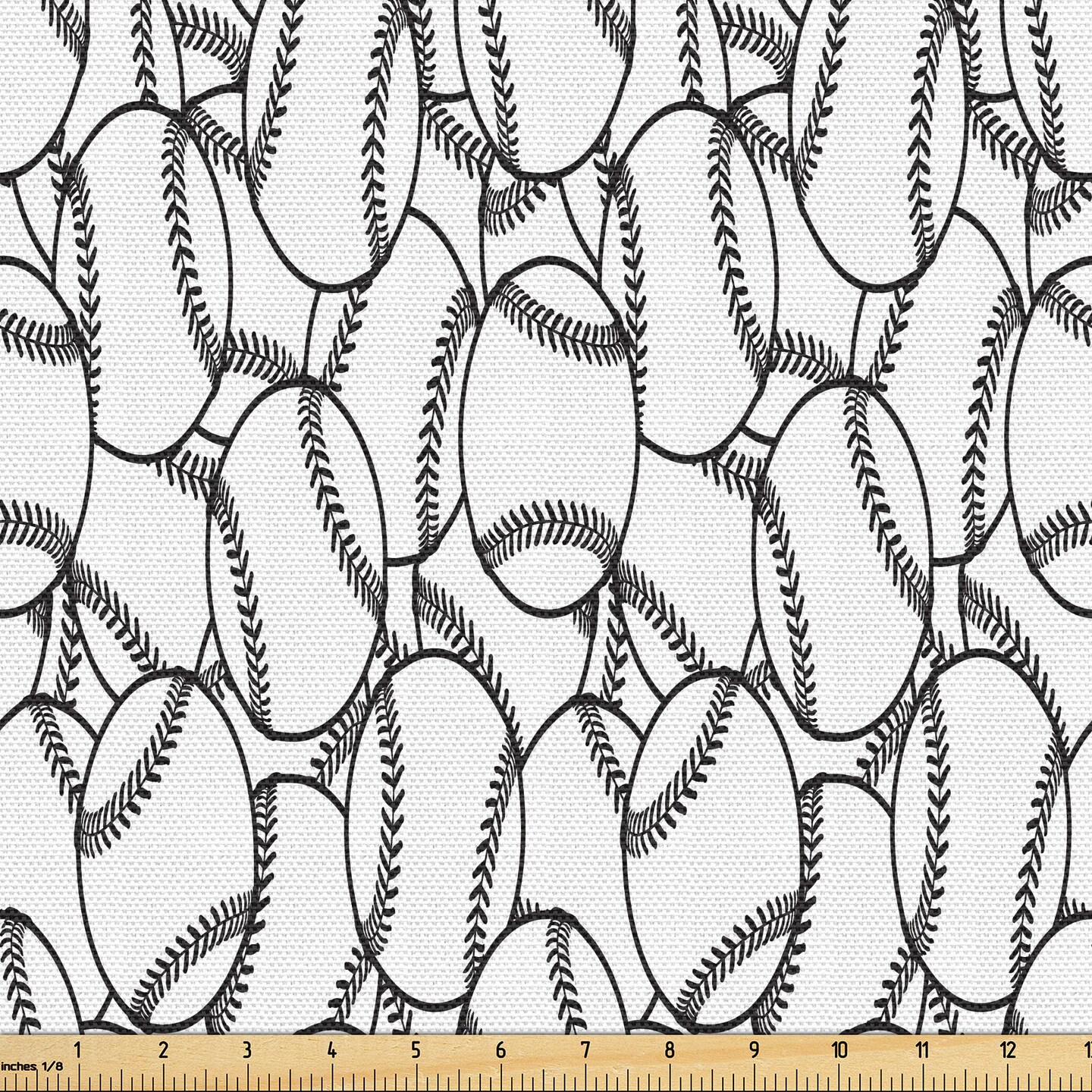 Ambesonne Baseball Fabric by the Yard, Monochrome Sports Tee Ball Soft Ball Sports Active Life Motivation Print, Decorative Fabric for Upholstery and Home Accents, Charcoal Grey White