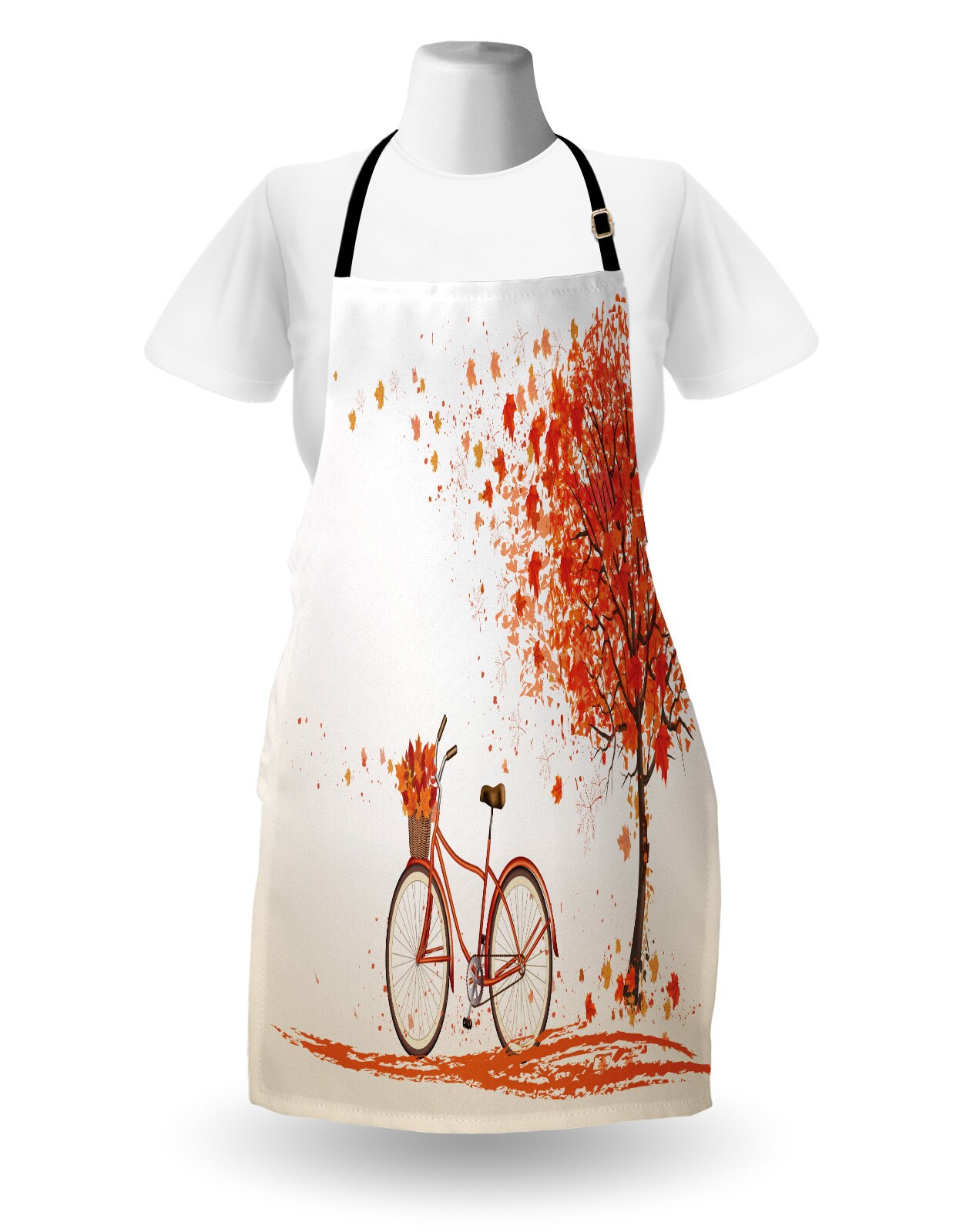 Ambesonne Bicycle Apron, Autumn Tree Aged Old Bike November Day Fall Season Park Nature Theme, Unisex Kitchen Bib with Adjustable Neck for Cooking Gardening, Adult Size, Orange