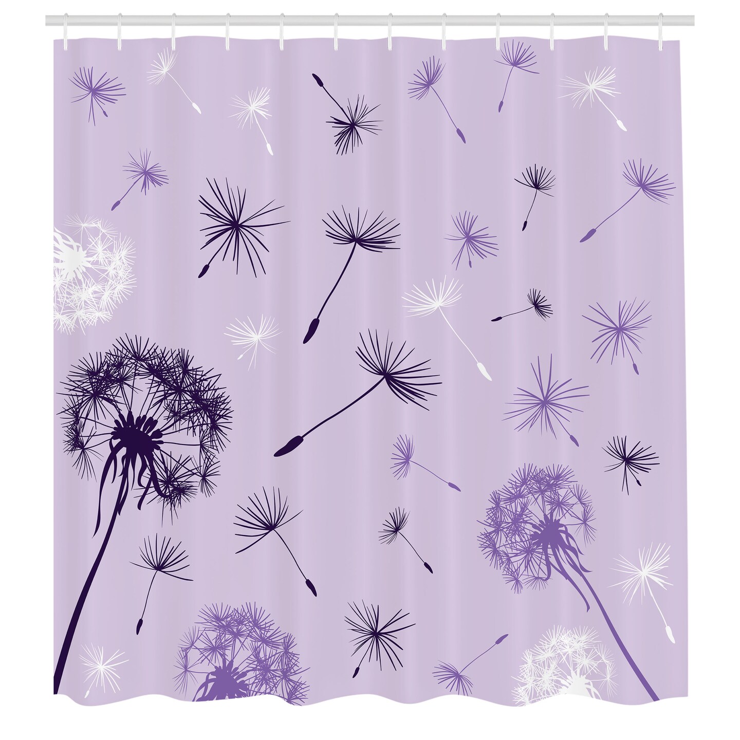 Ambesonne Dandelion Shower Curtain, Purple Tone Monochrome Design Dreamy Botany Pattern, Cloth Fabric Bathroom Decor Set with Hooks, 69" W x 70" L, Lavender Dark Purple