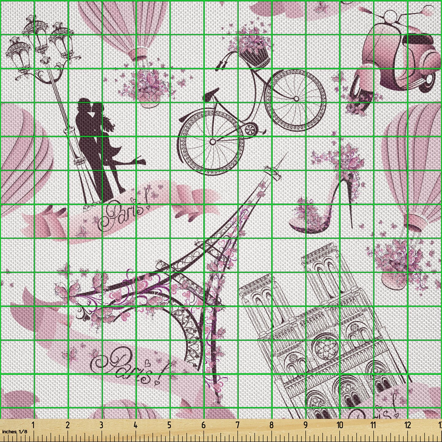 Ambesonne Eiffel Fabric by The Yard, Love in The City Paris French Bridal Composition Romantic Travel Pink Blossoms, Decorative Satin Fabric for Home Textiles and Crafts, 10 Yards, Rose Black White