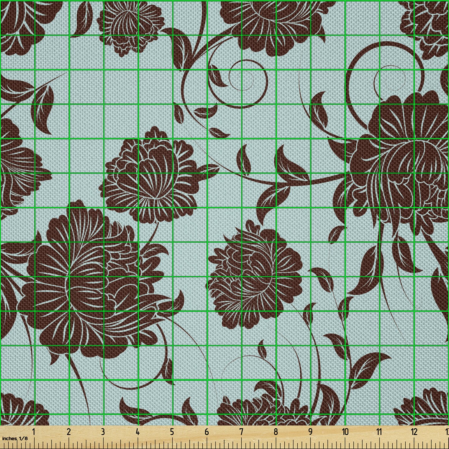 Ambesonne Floral Fabric by The Yard, Ornamental Flowers Design with Curvy Swirled Branches and Leaves Vintage Art, Decorative Satin Fabric for Home Textiles and Crafts, 3 Yards, Pale Blue Brown