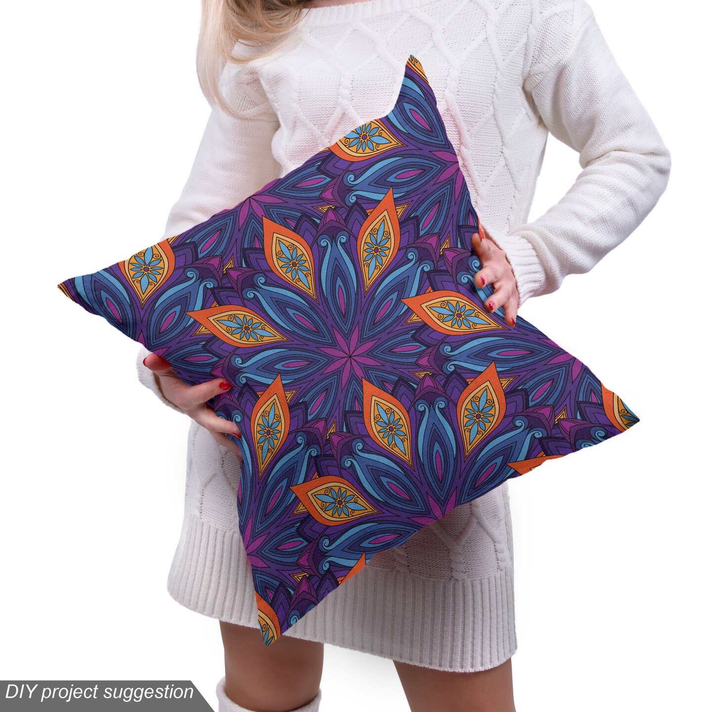 Ambesonne Mandala Fabric by The Yard, Vibrant Colored Floral Pattern Eastern Style Vintage Art Desin Print, Decorative Fabric for Upholstery and Home Accents, 5 Yards, Orange Blue