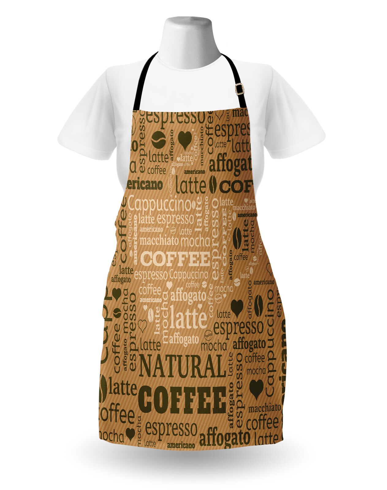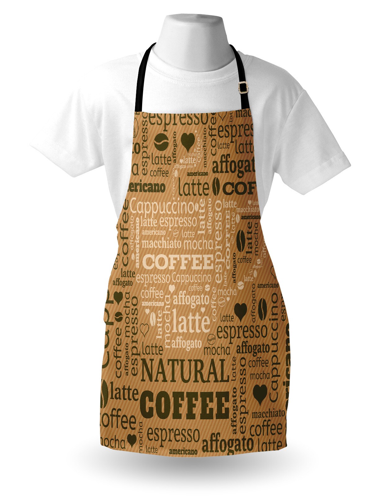 Ambesonne Modern Apron, Modern Style Typography Word Arrangements Tracking Coffee Themed Beverage Design, Unisex Kitchen Bib with Adjustable Neck for Cooking Gardening, Adult Size, Pale Brown