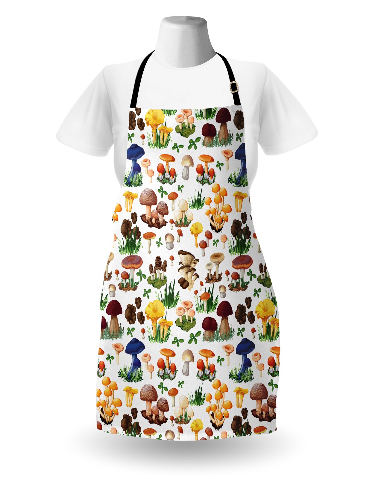 Ambesonne Mushroom Apron, Pattern Types of Mushrooms Wild Species Natural Organic Food Garden Theme, Unisex Kitchen Bib with Adjustable Neck for Cooking Gardening, Adult Size, Multicolor
