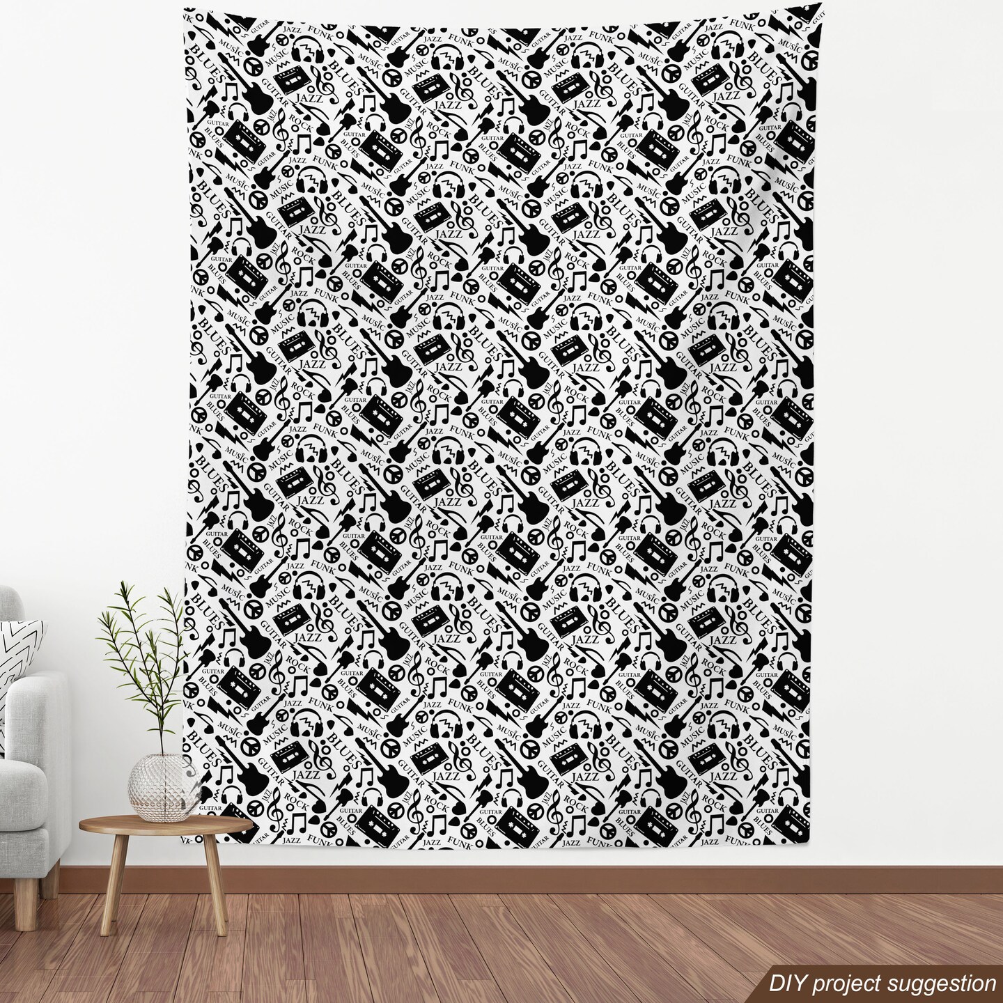 Ambesonne Music Fabric by The Yard, Blues Jazz Punk Rock Various Type of Folk Indie Rap Reggae Peace Sign Sing Art, Decorative Fabric for Upholstery and Home Accents, 1 Yard, Black and White