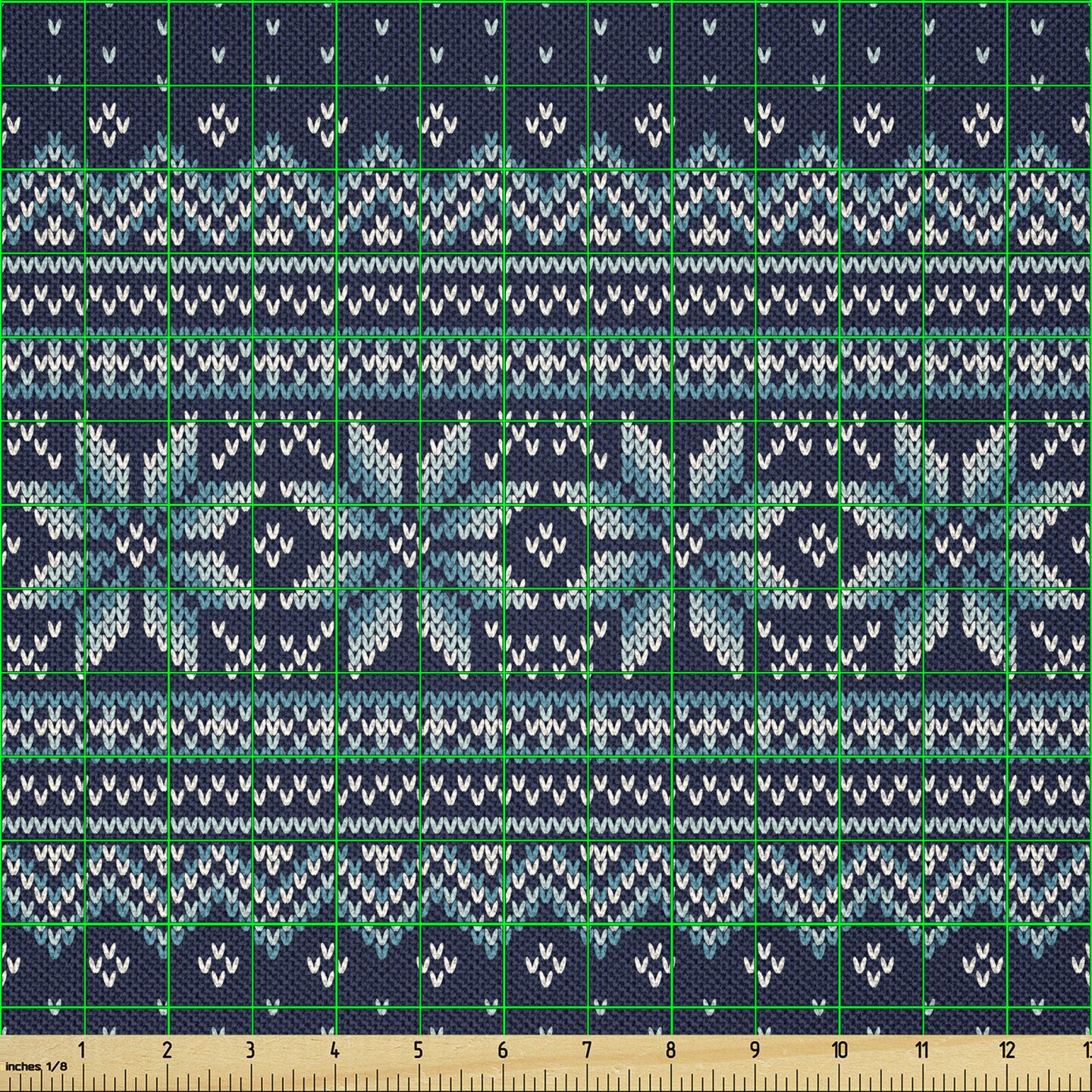 Ambesonne Nordic Fabric by The Yard, Simplistic Pattern with Chevron Herringbone Abstract Snowflake Print, Decorative Satin Fabric for Home Textiles and Crafts, 5 Yards, Turquoise Blue