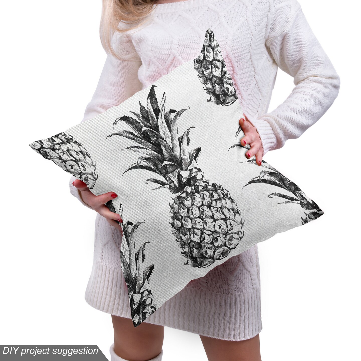 Ambesonne Pineapple Fabric by The Yard, Hand Drawn Tropical Theme Vintage Style Pineapple Fruit Pattern, Decorative Fabric for Upholstery and Home Accents, 10 Yards, Black Gray
