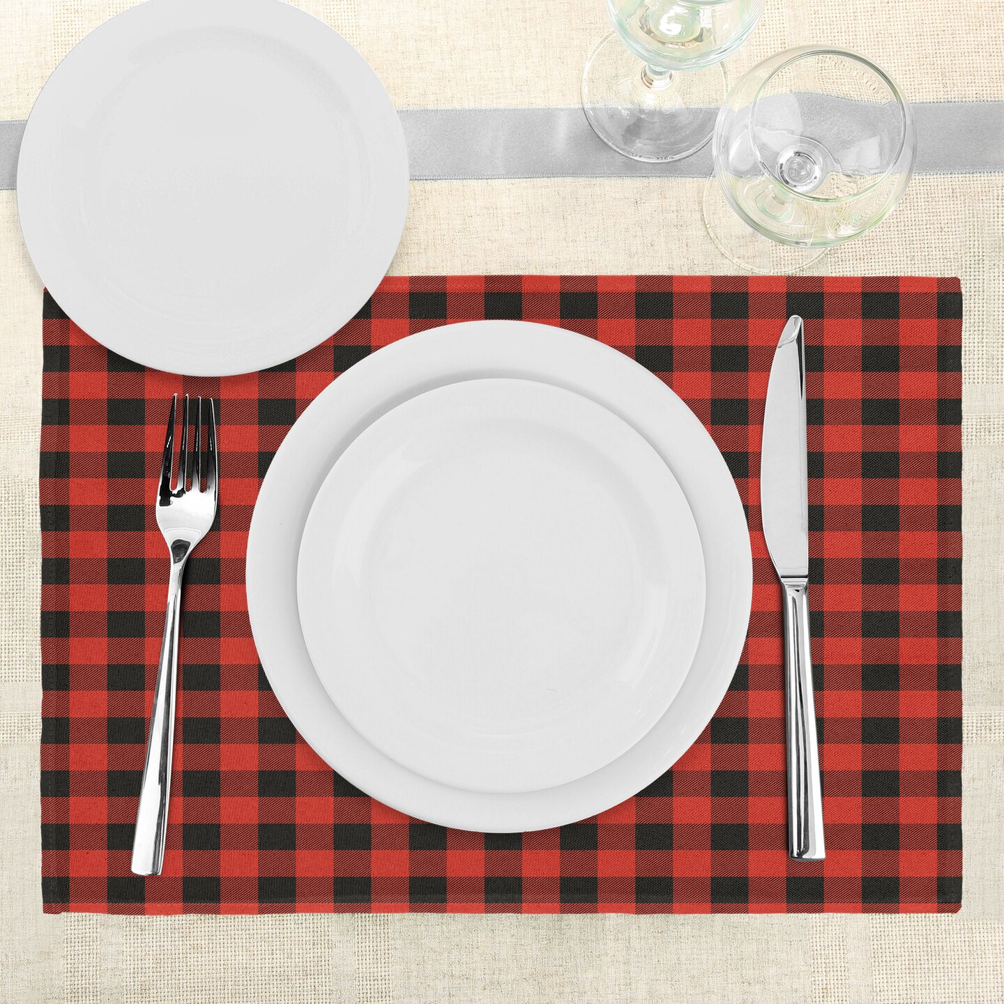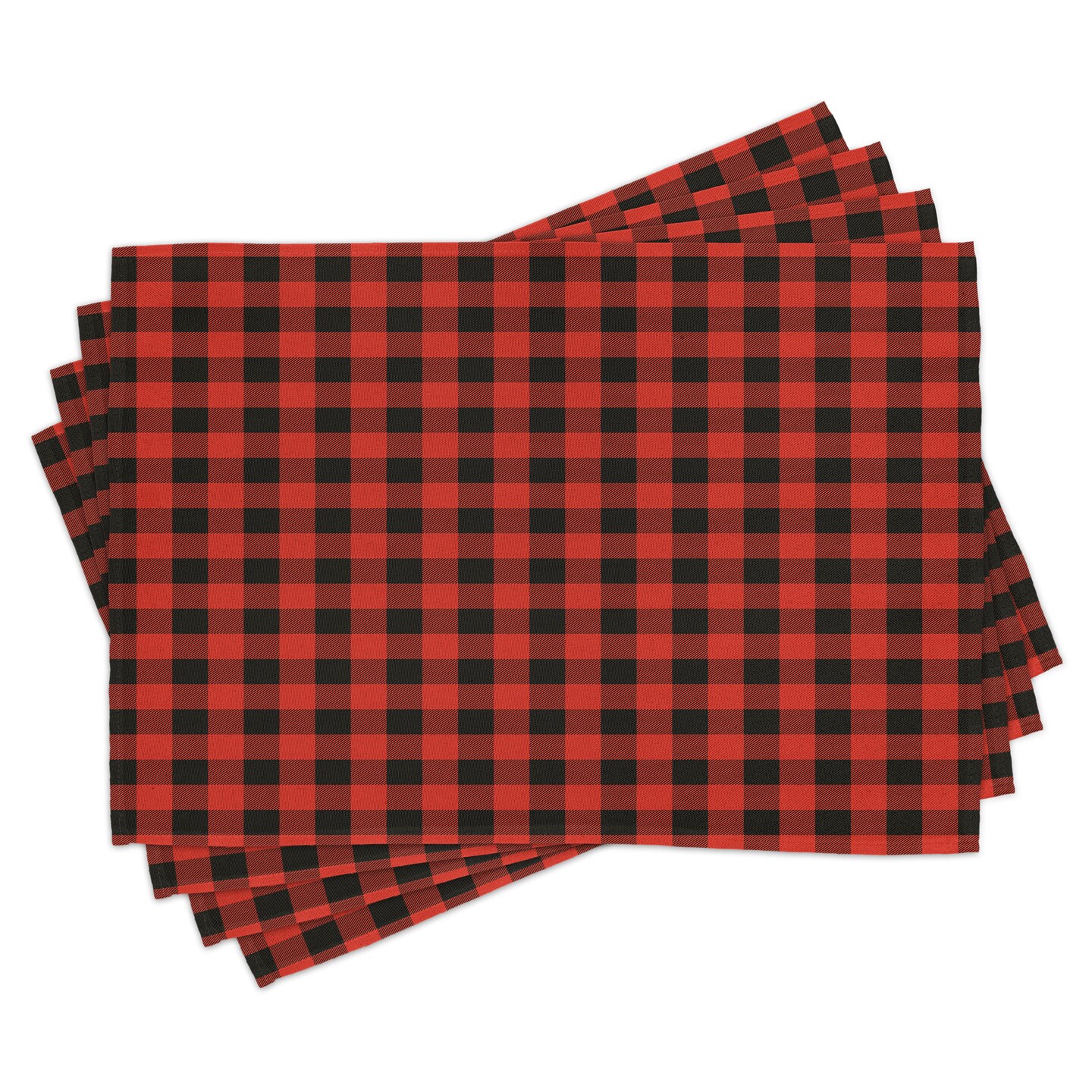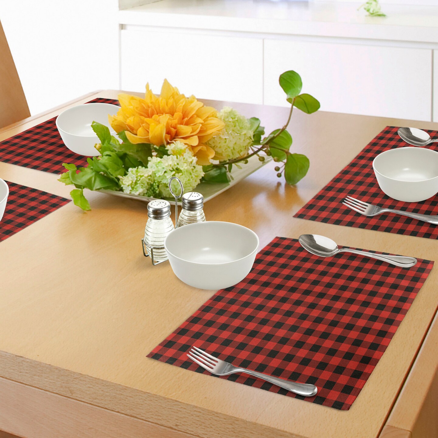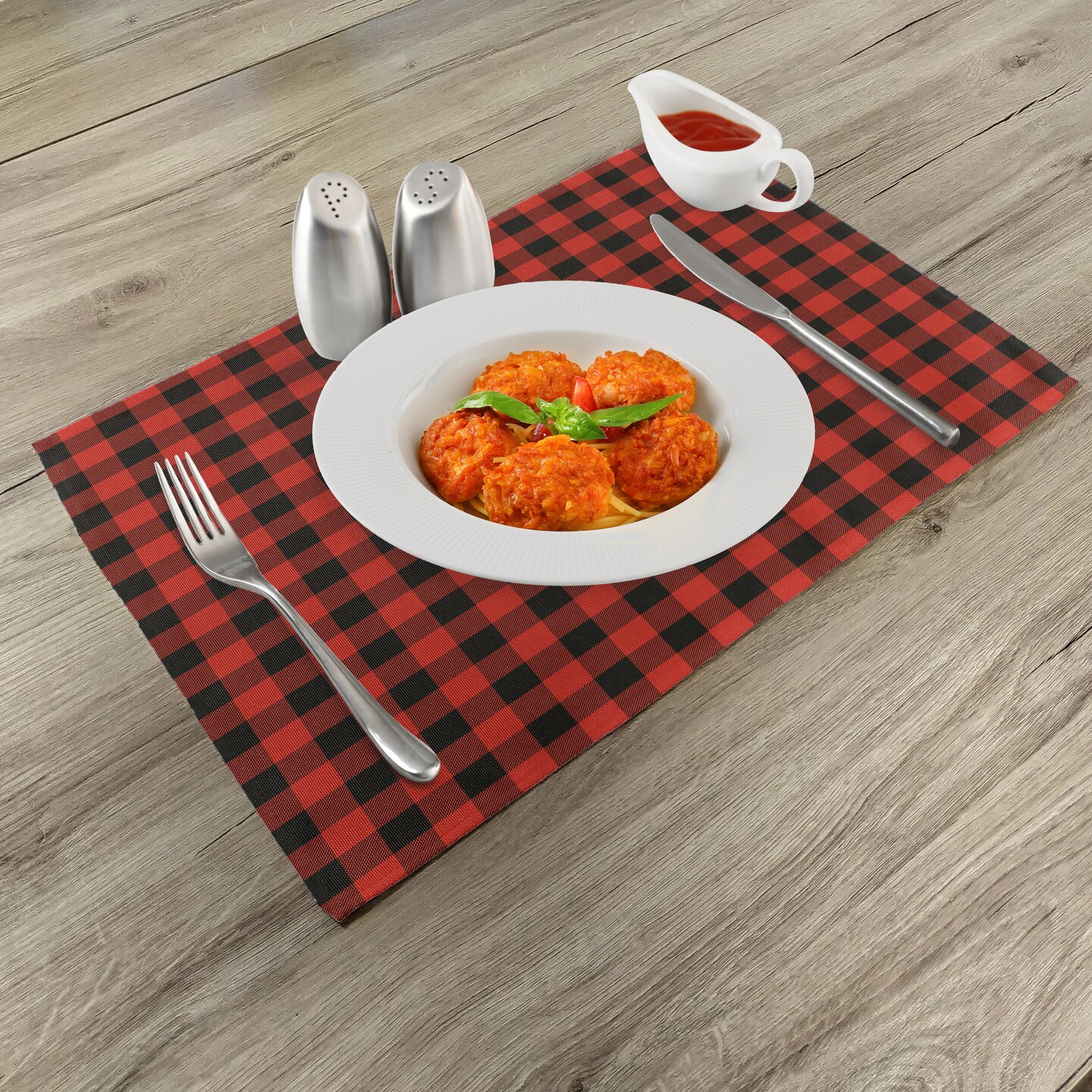 Ambesonne Plaid Place Mats Set of 4, Lumberjack Fashion Buffalo Checks Pattern Retro Style Grid Composition, Washable Fabric Placemats for Dining Table, Standard Size, Orange Black