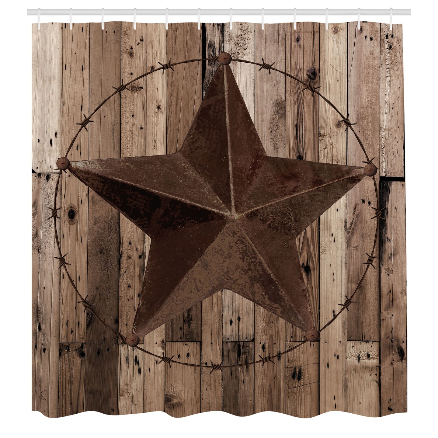 Ambesonne Rustic Shower Curtain, Wooden Background Pattern with a Weathered Star Figure Image, Cloth Fabric Bathroom Decor Set with Hooks, 69" W x 70" L, Brown Dark Grey