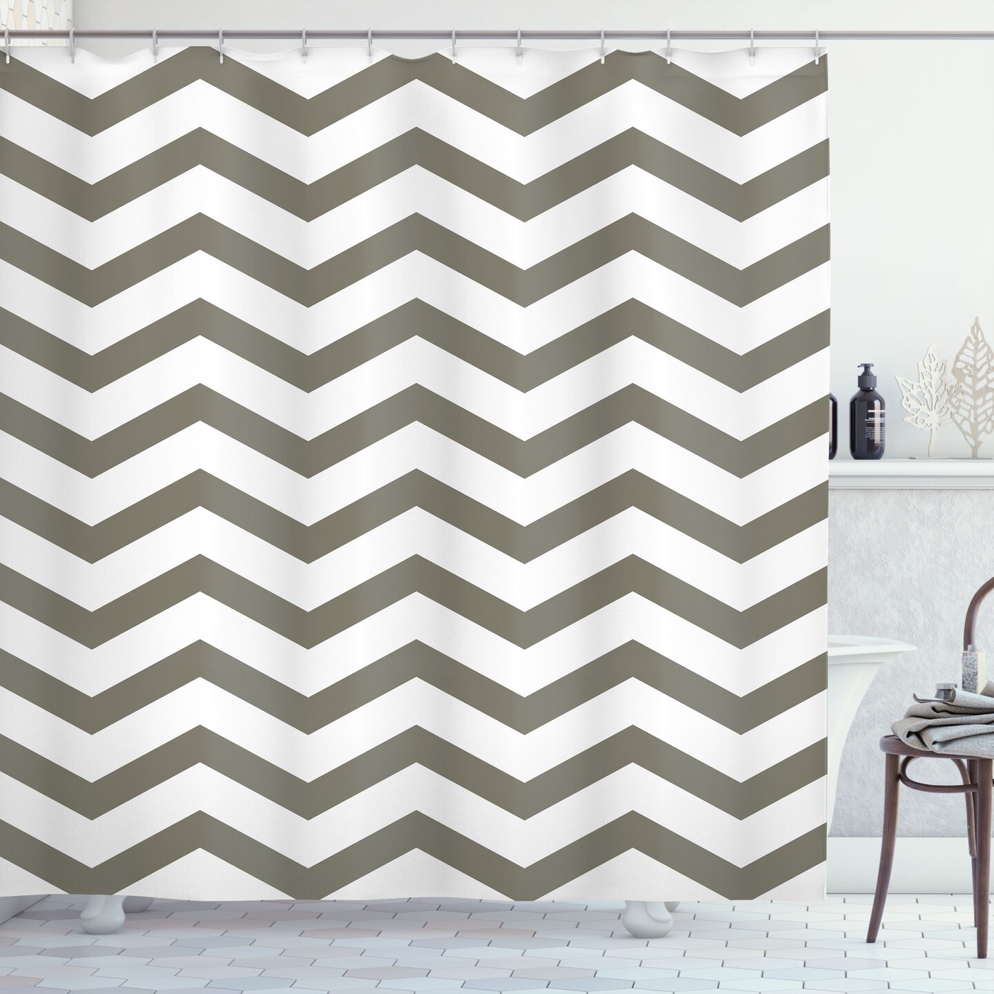 Ambesonne Striped Shower Curtain, Modern Summer Season Pattern Zigzag Tile Design Wavy Curved Horizontal Motif, Cloth Fabric Bathroom Decor Set with Hooks, 69" W x 75" L, Sage Green