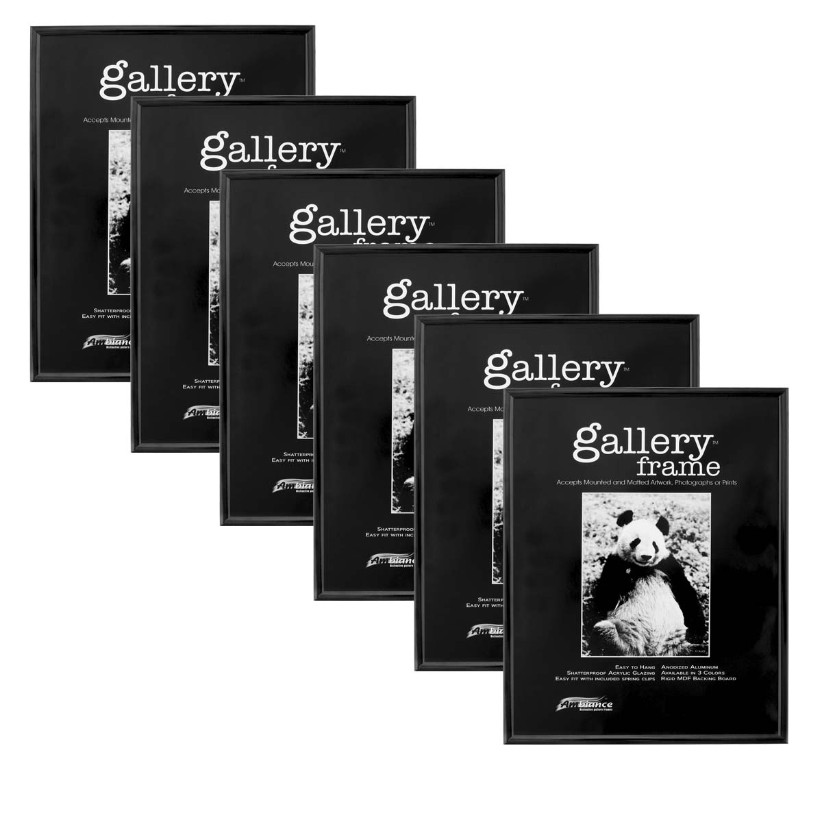 Ambiance Gallery Aluminum Picture Frame, 20"×24" Black, Pack of 6, Includes Shatterproof Glazing and Spring Loaded Backerboard - Easy to Frame
