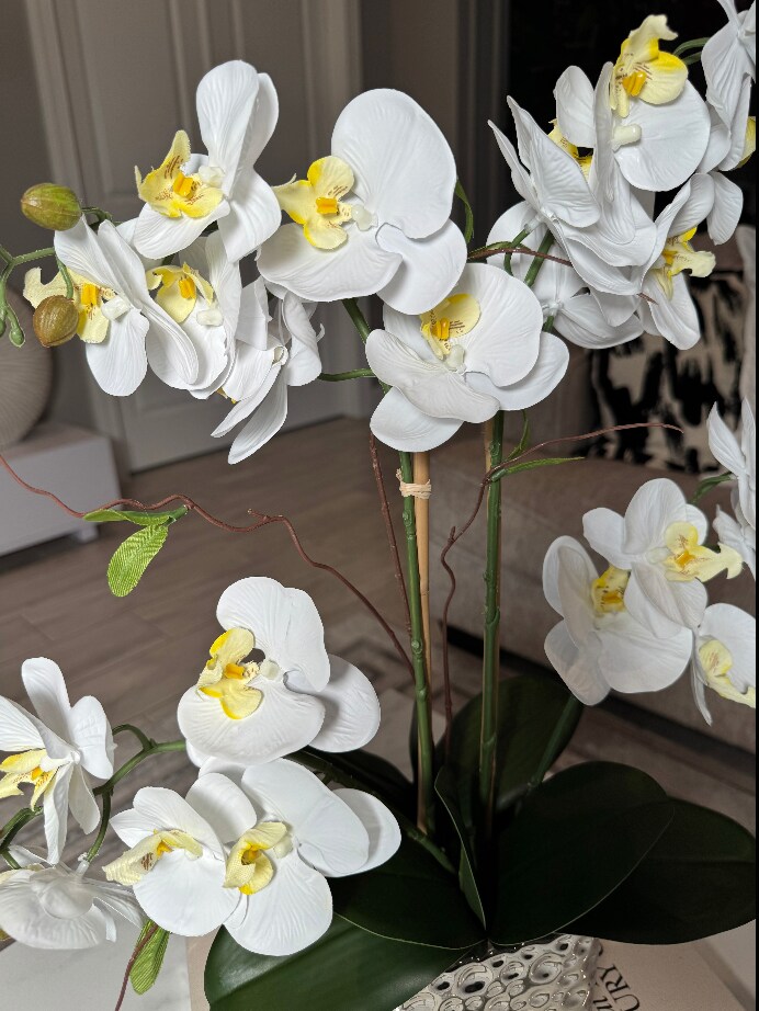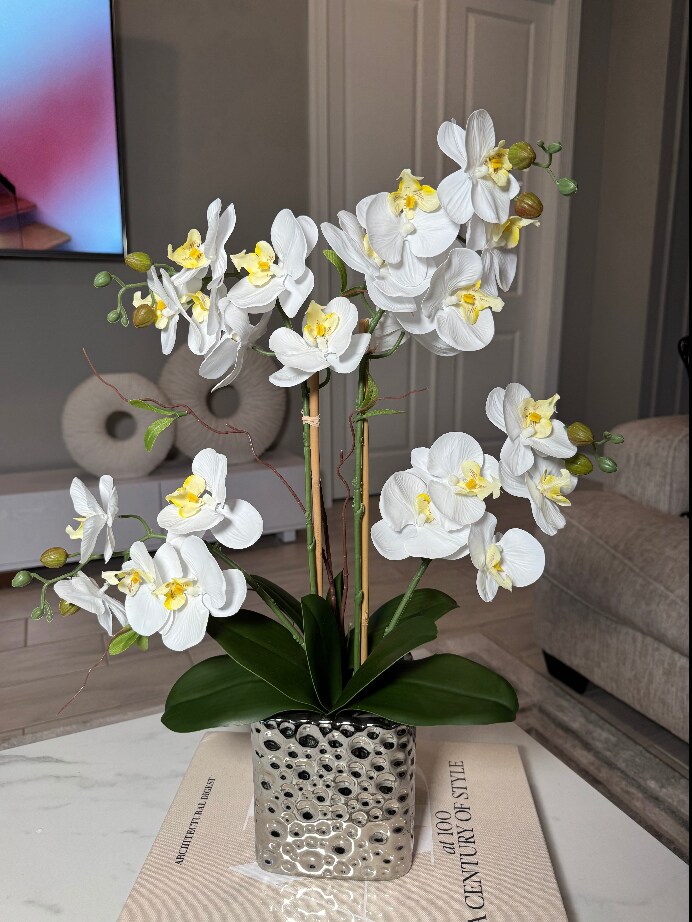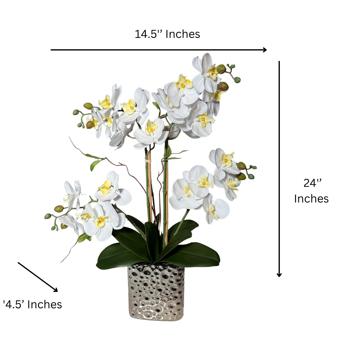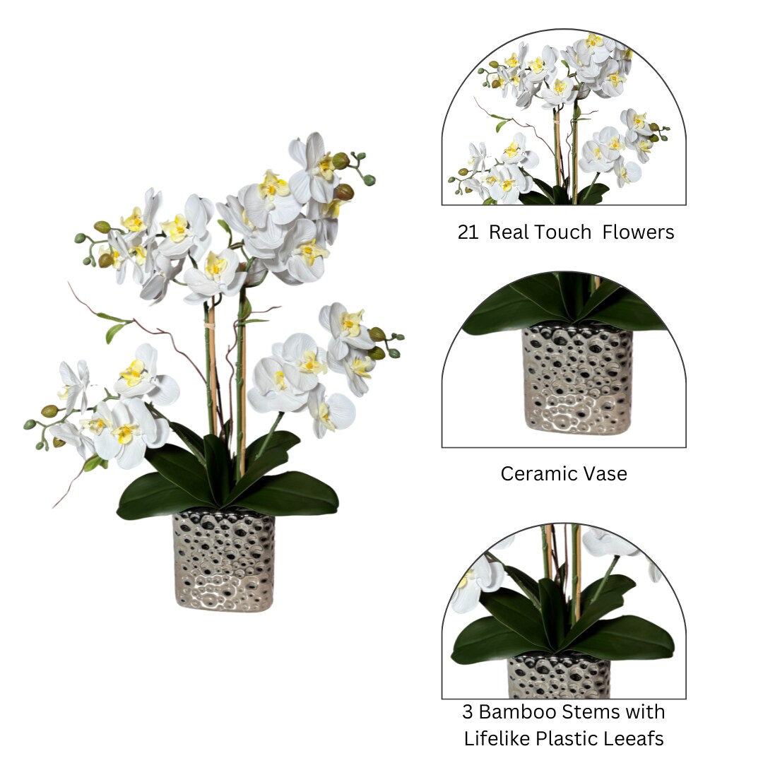 Amelie Real Touch Phalaenopsis Orchid Arrangement Silver Ceramic Vase