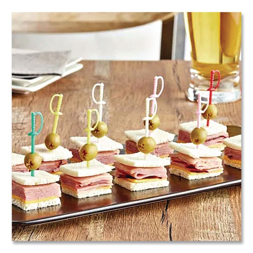 AmerCareRoyal 3.25 in. Plastic Sword Picks - Assorted Colors (10000/Carton)